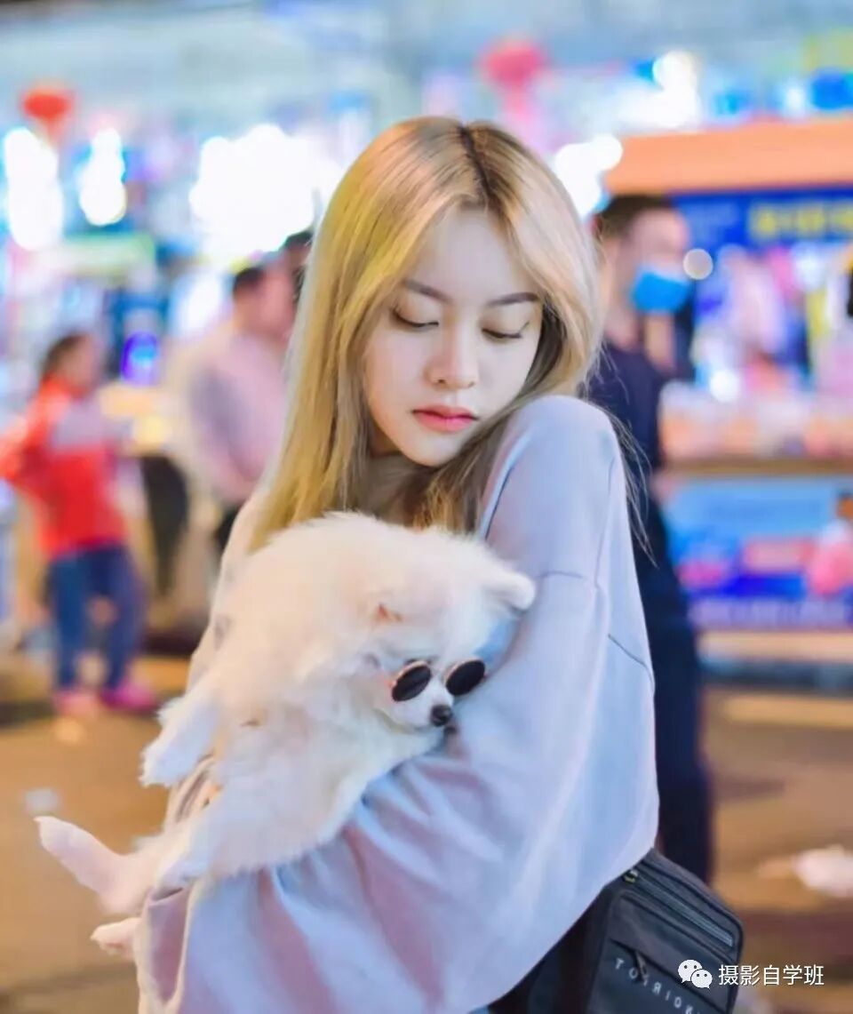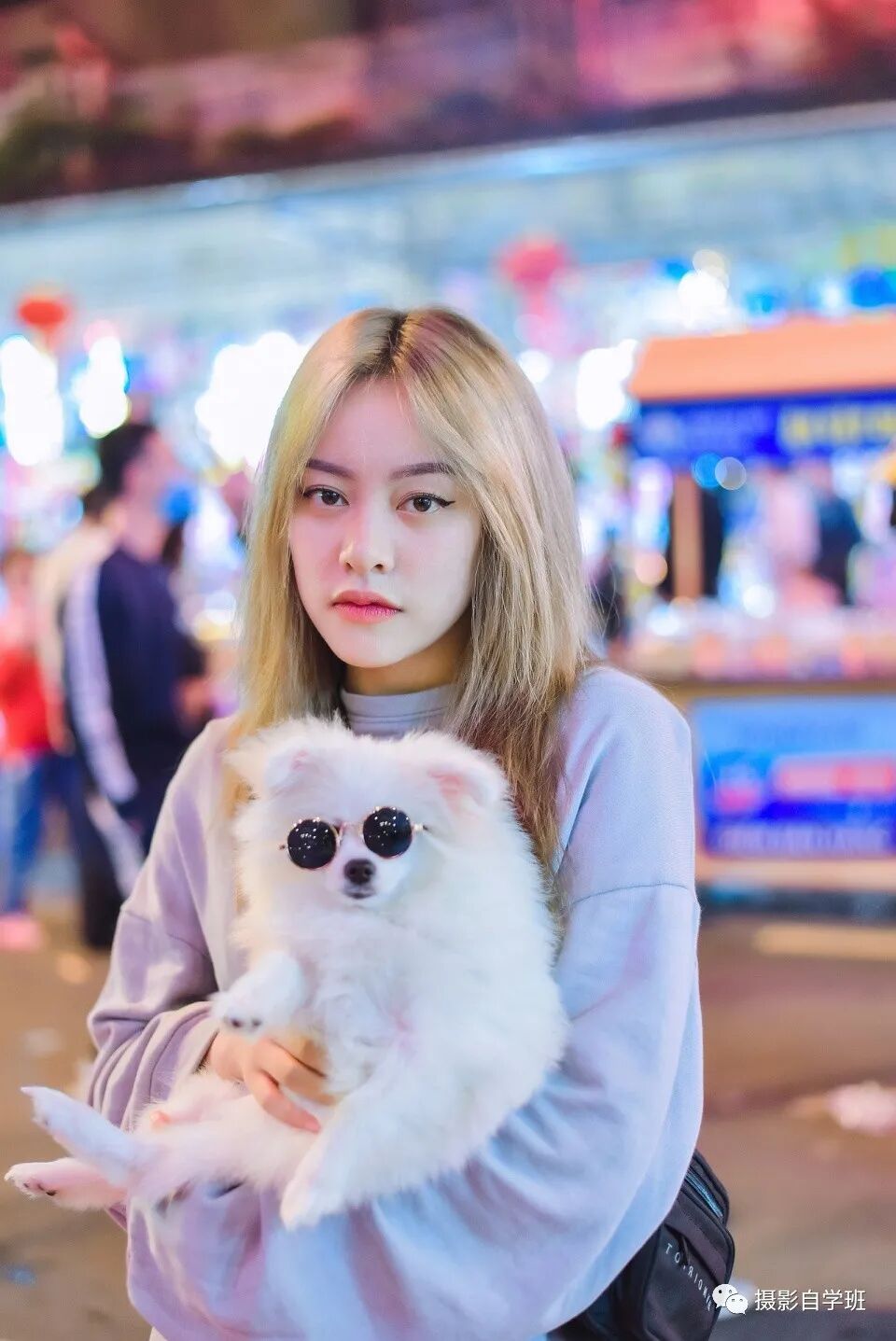 第二个错误是,不要让人直勾勾地看着镜头,完全可以像下图这样,和怀中的小动物做些互动,让它看地面,被拍摄的人,再和它一起看,这样就自然很多了。