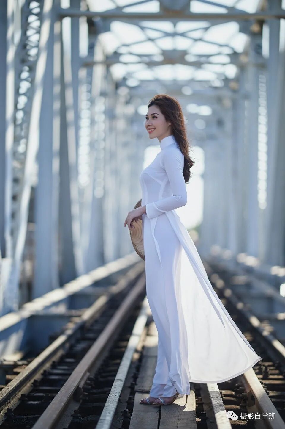 不要像上图这样,虽然看向别处了,但能明显看出来,是故意的,倒不如回头看向镜头。同时注意拍摄环境,不要离背景太近,像上图这样,轨道,或者像下图这样,树林,画面纵深感更好。