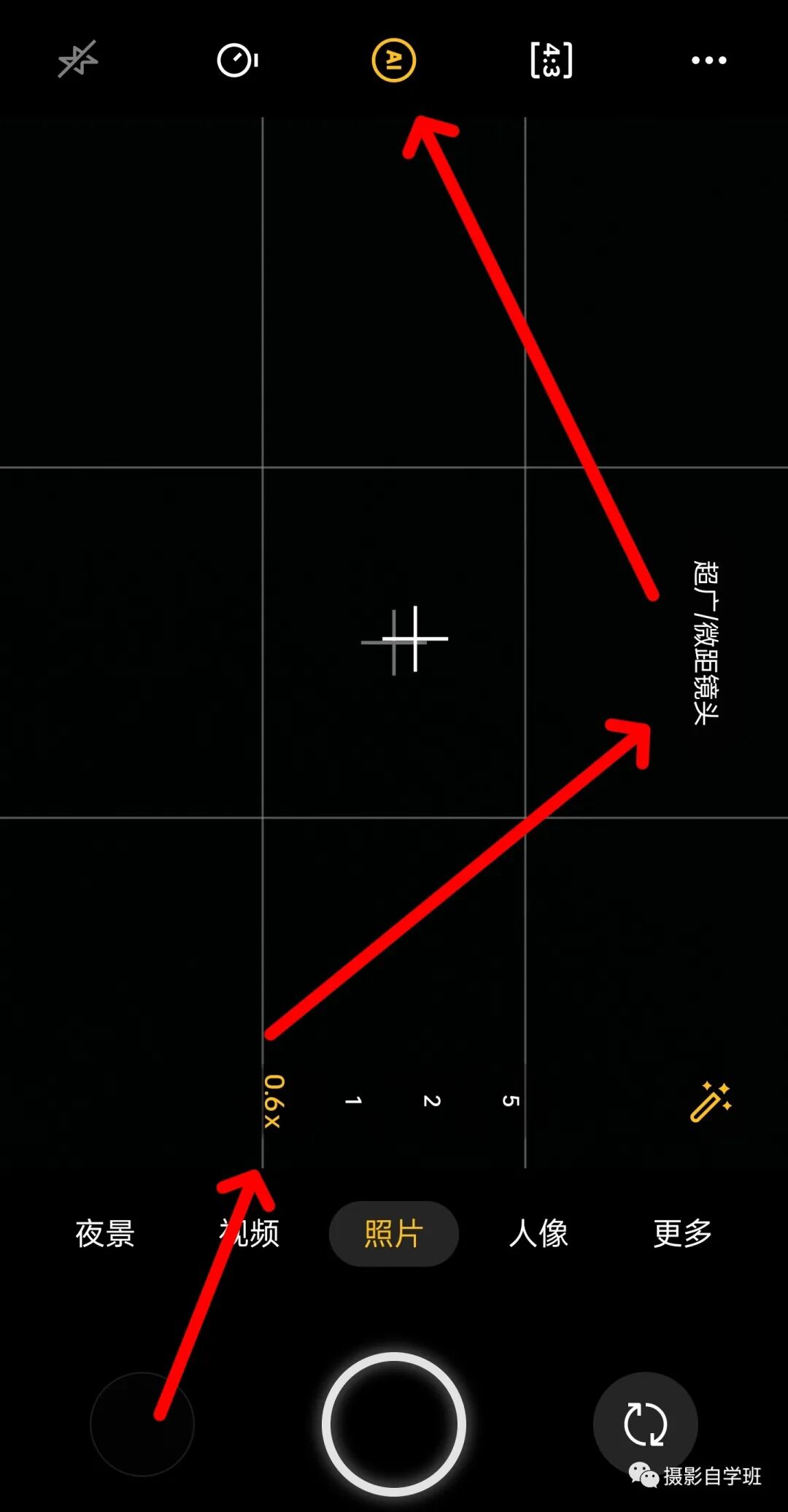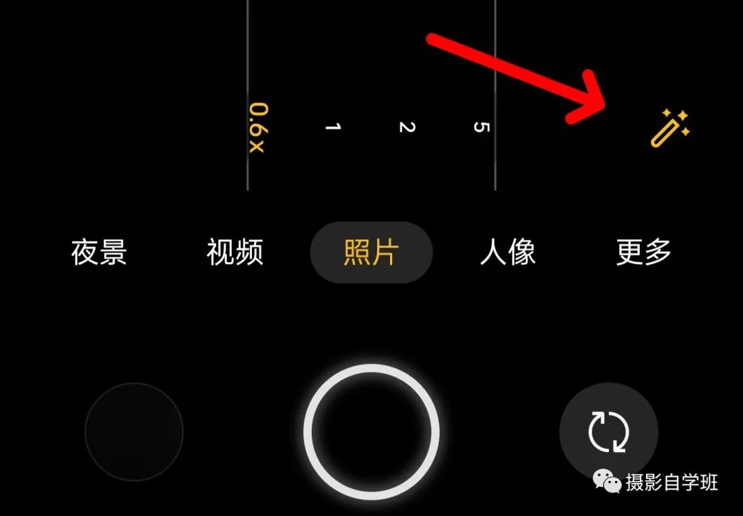 不同的品牌,调出来的方法是不一样的,我的这个手机,当点乘0.6倍的时候,会自动调用广角镜头。如果你的手机当中,有AI算法,记得把这个功能打开,像图4标注的这样,手机会通过智能算法,来让你的照片更精美。