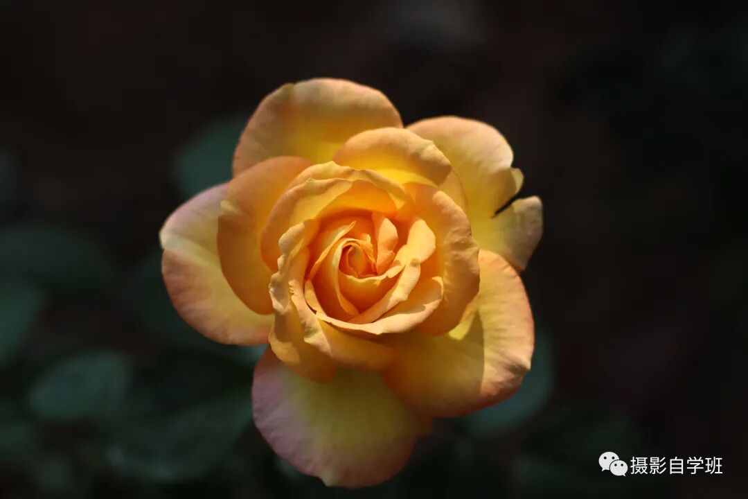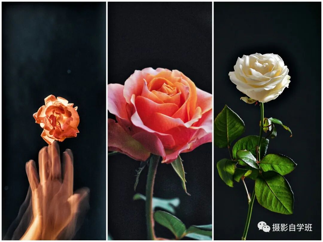 当你调快快门或者调小光圈,或者调低感光度,画面整体会变暗,但如果此时有光照到你的主体花朵上,主体受影响就会很小,背景就会变得更加黑,就能拍出图8、图9、图10这样的纯黑背景了,寻找光比,在你拍黑背景的月季花照片,是很重要的。