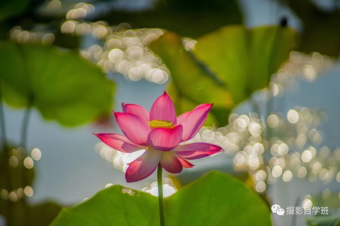 水面上的光斑,是荷花拍摄中的重要元素之一,可以营造出神秘、唯美的氛围。在拍摄时,可以使用大光圈或者调整光圈和快门速度的组合方式,让水面的光斑更加细腻和明亮。