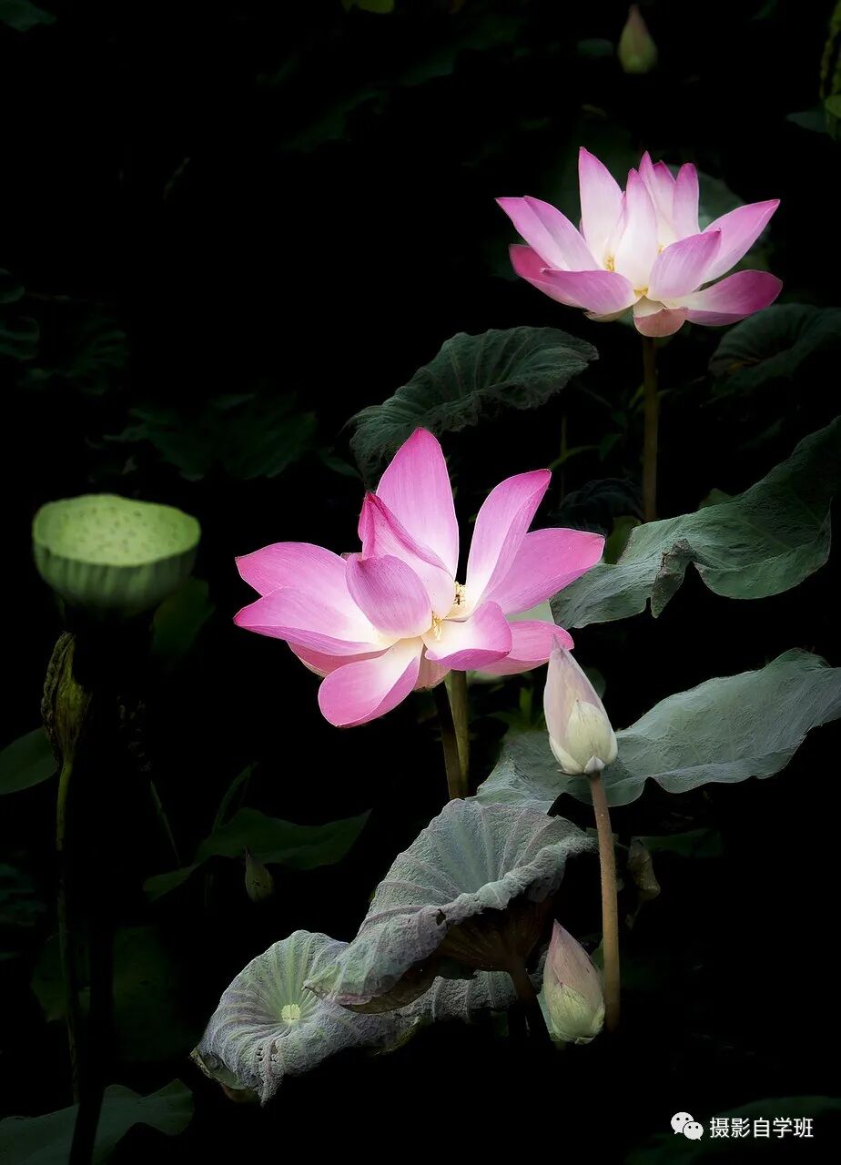 在拍摄荷花时,黑暗背景,是常用的拍摄方式之一。通过调整光圈和快门速度,让荷花成为明亮的焦点,而周围的背景则保持黑暗,从而营造出神秘的氛围和艺术感。但不要犯图8这样错误,不要让背景有明显分层,图8上方暗,下方亮,分层明显就不好看了。