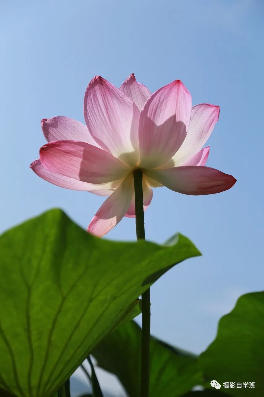 等来光线之后,逆光加仰拍,让荷花照片特别的同时,还有质感。
