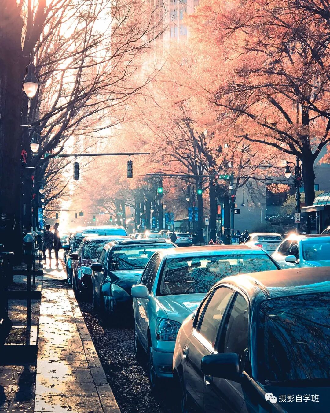 训练自己摄影思维的时候,还要记住多个技巧,结合在一起使用,像图7这张照片,在选择了时间之后,还要学会顺着引导线向前拍摄,一辆一辆排在路上的汽车,形成规律,也为你的照片,增加了韵律感。