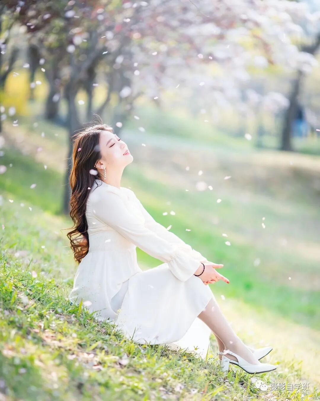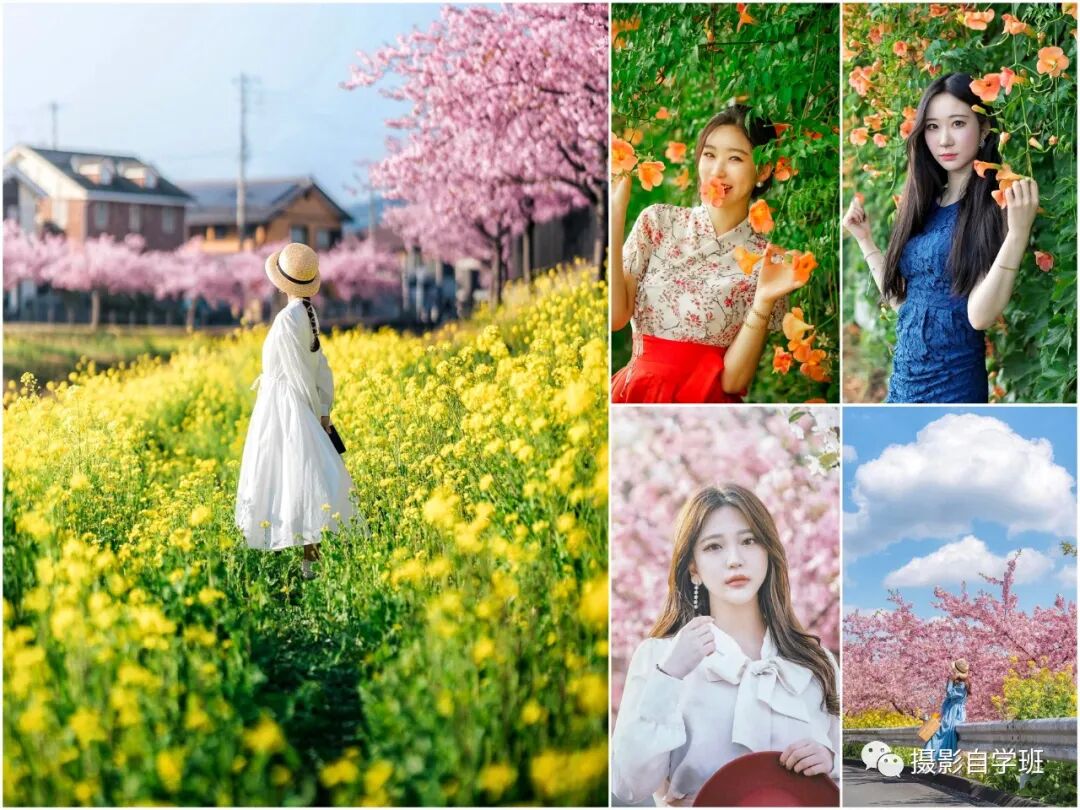 有道是:景美人可小。景乱机位调。顺线对比背影妙。面对镜头睁眼瞧。树下可把花瓣飘。
