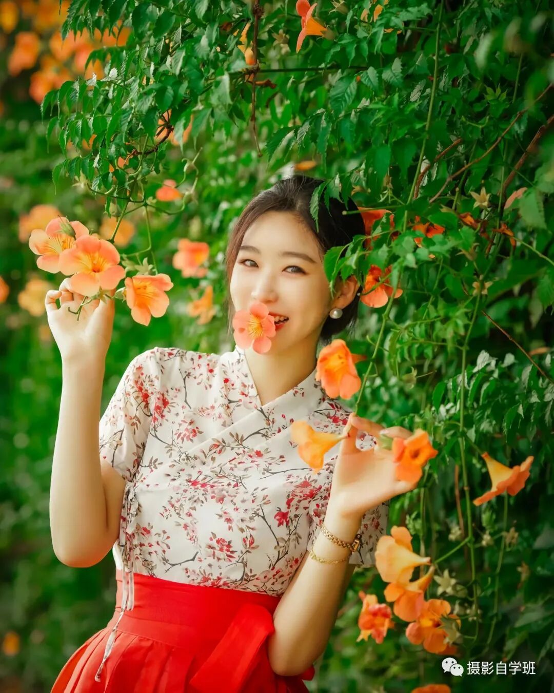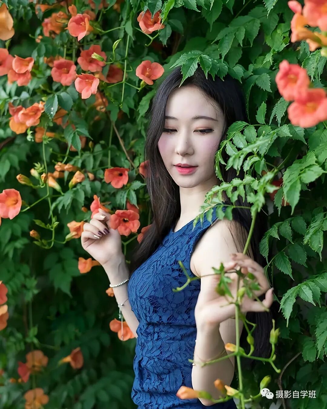 如果拍摄环境比较乱,那要注意调整机位,变换方向了,像图3、图4、图5这三张照片,都是在马路边的花墙下拍摄的,路上车人都很多,所以要缩小取景范围,不要让捣乱的元素,进入到画面当中。