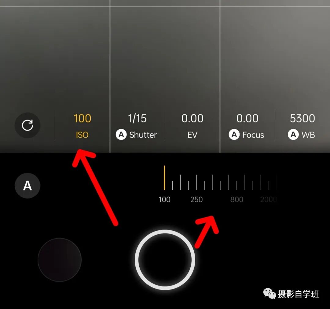 以上选景等基础工作做好了,你要明白,在有光的时候,怎么让画质更高!你要在专业模式中,找到iso,也就是感光度,把这个参数调到最小,这样拍出来的画质才细腻,才不粗糙。