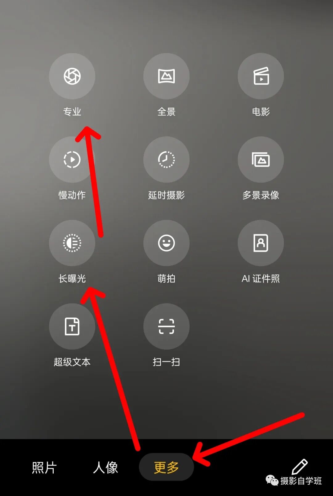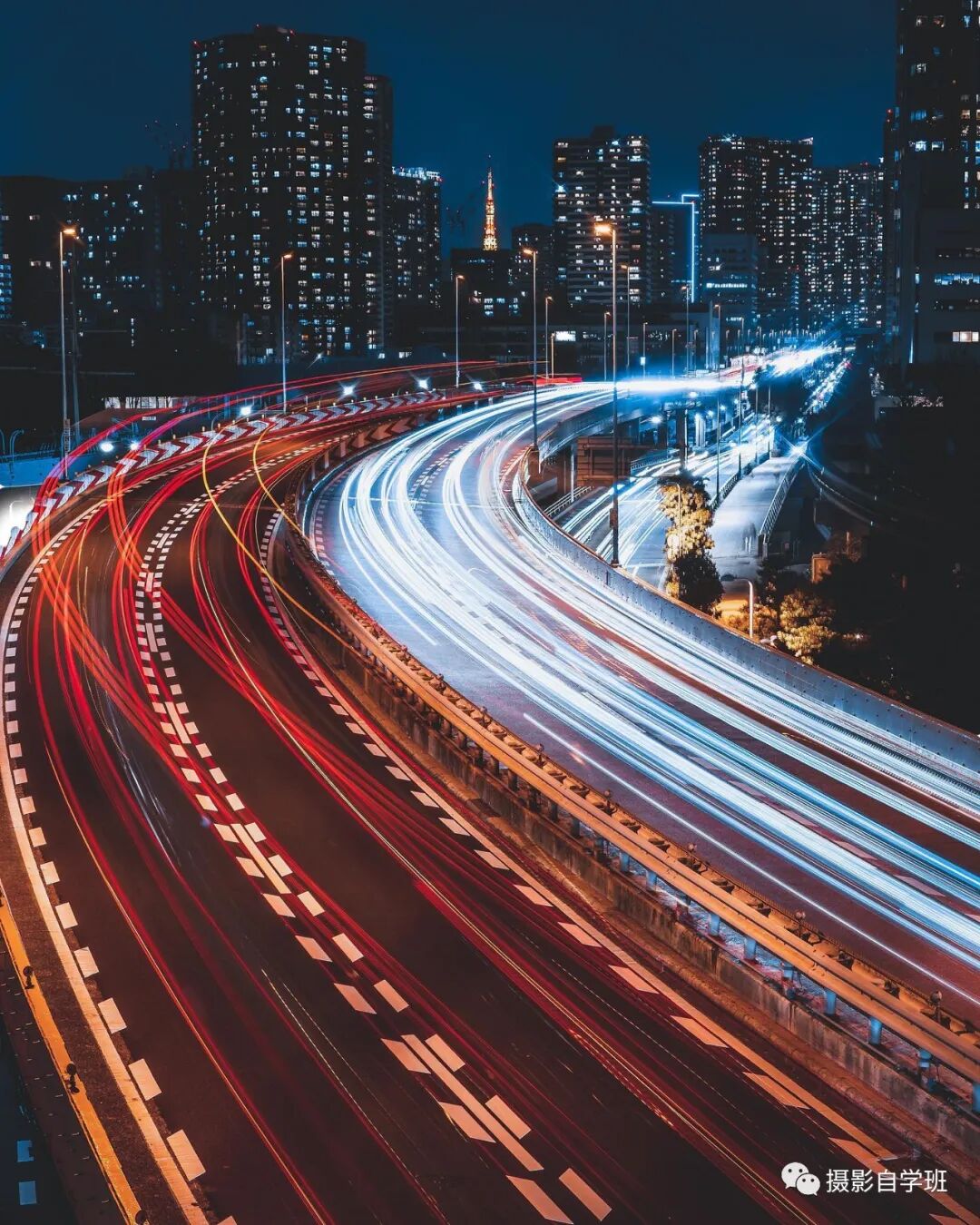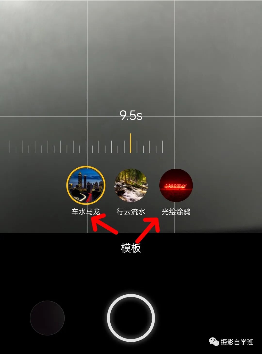 夜景怎么拍光轨?在手机相机更多设置中,找到长曝光,打开,选择拍车水马龙还是光绘涂鸦。像图13这样,用三脚架稳定住相机,找到有车且绝对安全街道边,就能拍出图14这样的画面了。手机摄影,我会出系列教程,以后会单独有一节,来具体详细讲解怎么用手机拍光轨,点击“摄影自学班”头像,再点关注,不要错过以后的精彩教程。
