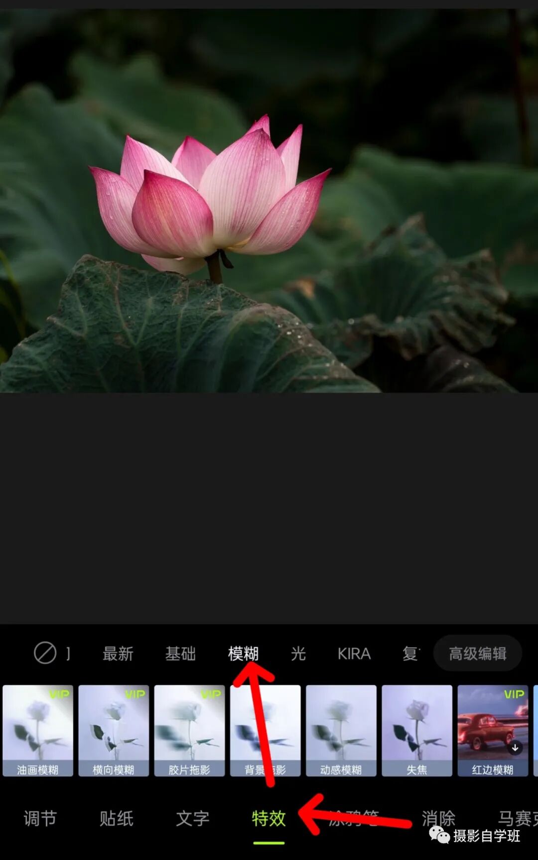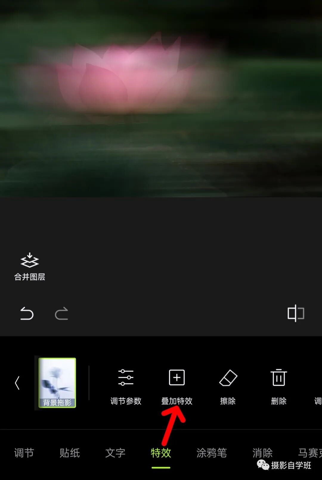 荷花拖影的照片,很多朋友喜欢,摄影自学班在之前的教程当中讲解过,怎么拍摄出来,今天这篇教程,主要讲解怎么通过手机修图,来修出荷花拖影的效果?