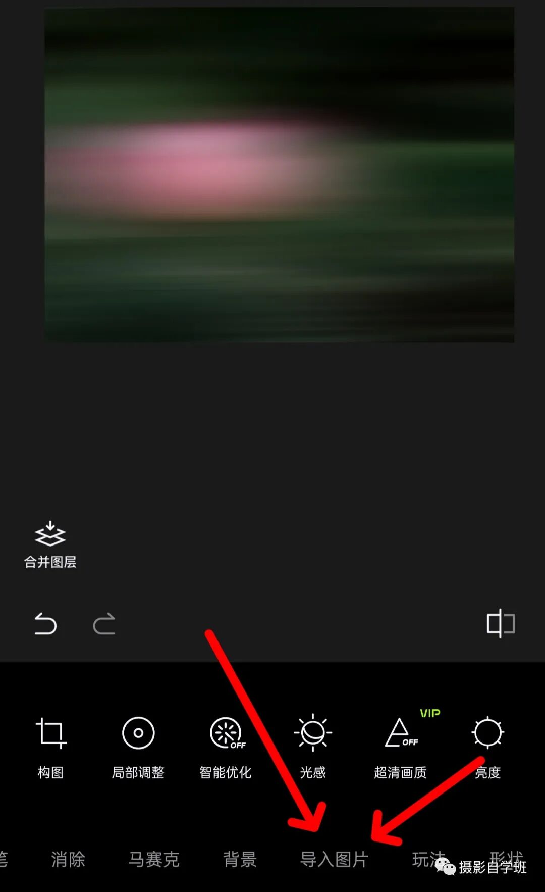 六、拖影效果我们就已经制作完毕,你会发现原图当中的荷花,已经完全看不见了,所以我们需要像图8这样,点击下方的导入图片,导入你的这张照片的原图。