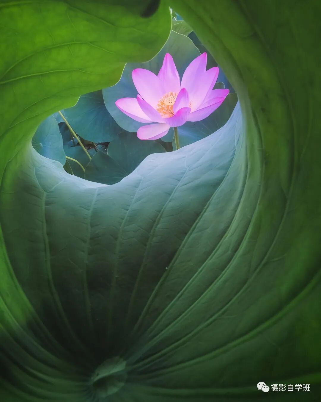 荷叶上的线条,增加了照片的纹理感,使得画面更加耐看,我们在拍摄荷花的时候,直接模仿图12这样的技巧,就可以了。