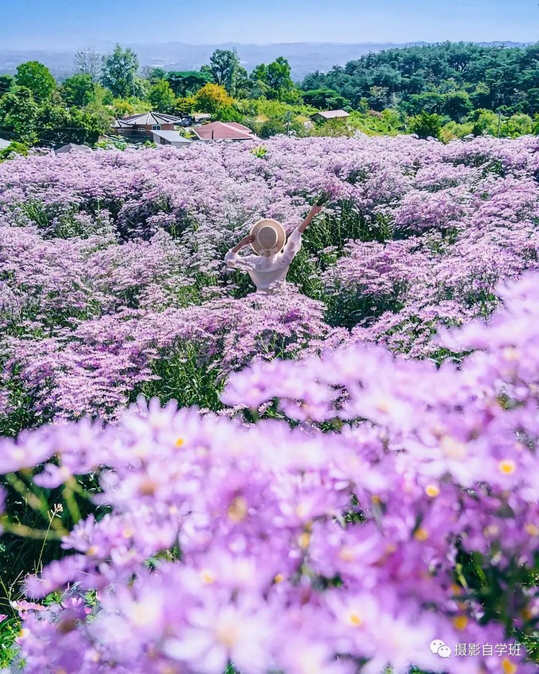 图9的错误,错在照片当中有人,但人不够突出,如果有人,要让这个人的衣服颜色与现场有明显区别,而图9当中现场是紫色的花,人物穿人的衣服是白色的,也被紫色染上了色彩,如果不注意观察,还看不到这个人,对比看一下图10,这就叫主体突出,周围都是花,而树与现场的花形态上、颜色上都有明显的区别。主体突出,照片看起来主次明显,才会更耐看,才会不空洞,才会不乱。