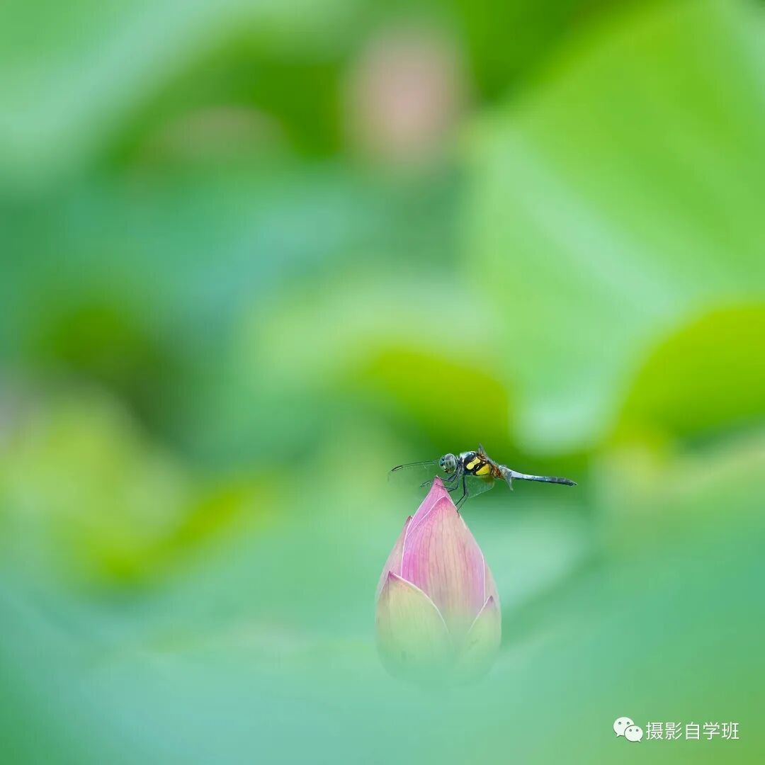 而图5这张照片,左侧空间再多一点,让主体荷花骨朵与蜻蜓,再靠右一点,会更好看了。
