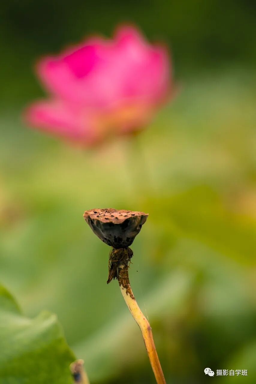 如果想拍残荷,或者想拍枯萎的莲蓬,没有问题,但图7错在背景的颜色比前景清晰的莲蓬更鲜艳,更抢眼。而如果想拍残荷,可以像图8这样,残荷是鲜艳的,背景中,没有比它再鲜艳的陪体。