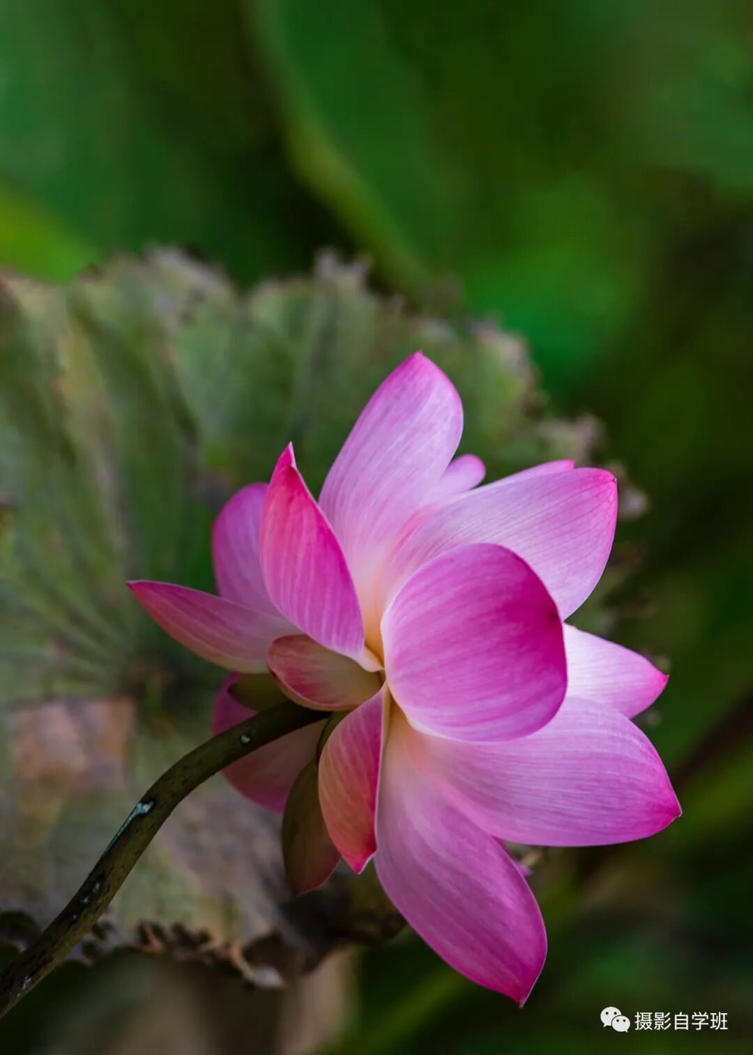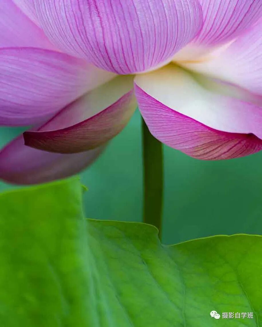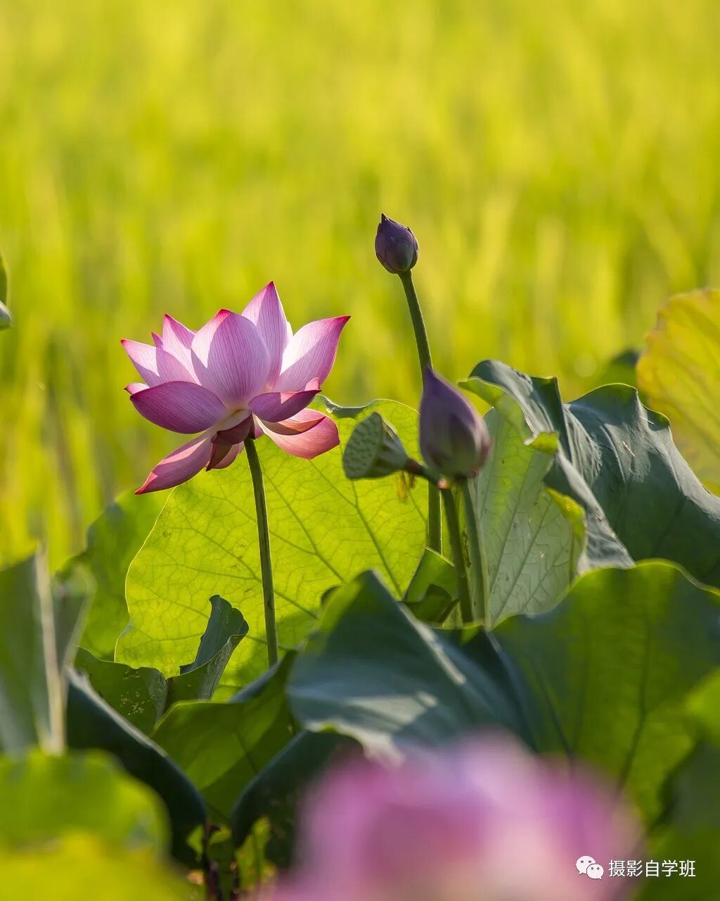 在拍摄荷花时,我们需要注意背景的颜色,尽量让背景颜色与荷花的颜色不同,这样可以让荷花更加突出,但背景整体的颜色,是相同的,会更好看。比如图11,背景上下颜色不同,形成断层,照片就会很一般,而图12背景都是柔和的绿色,更美观,也更柔和。控制照片整体的颜色,控制背景的颜色,让画面统一、不乱,照片干净,才会好看。
