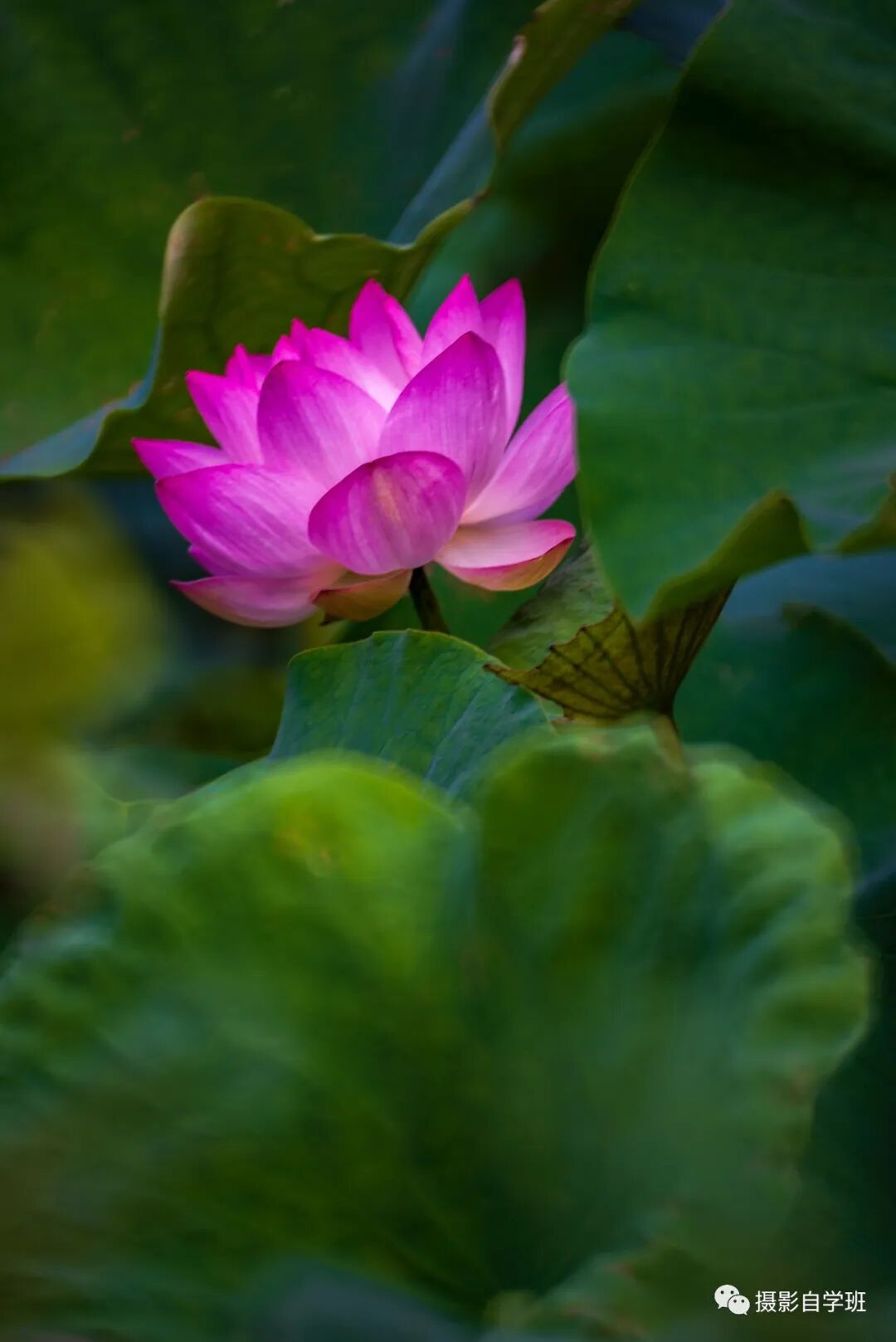 如果你想要让照片更加朦胧、梦幻,可以尝试将相机靠近荷花或者荷叶。这样可以让背景变得更加模糊,从而增强照片的氛围和美感。但要注意,有荷叶或者花瓣贴近镜头,主体荷花一定要远离镜头,这样才能形成空间,前景虚化的同时,照片的层次感更好。