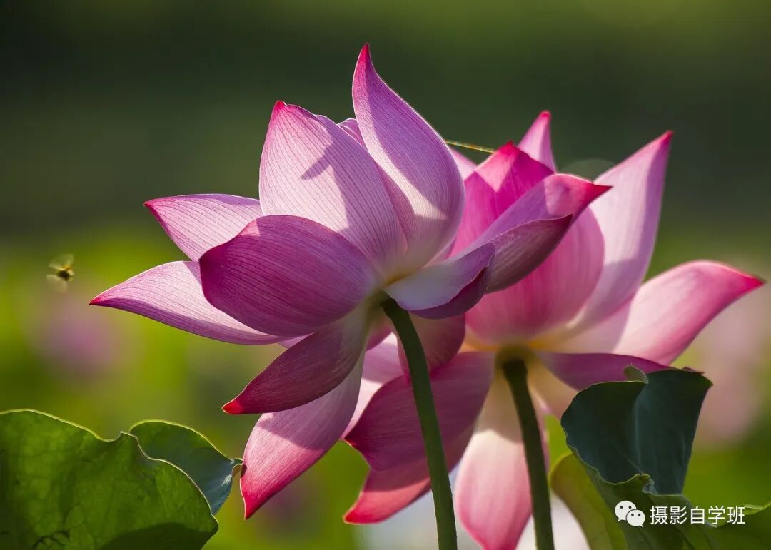 荷花是非常吸引昆虫的,因此在拍摄时要注意避免昆虫的活动。如果昆虫在画面中,可以等待它离开或者稍微调整角度,让它在画面中不那么显眼。或者像图4和图5这样,等待昆虫落在荷花上,这样昆虫与荷花融为一体,起到很好的点缀作用,让照片看起来不呆板,更灵动。