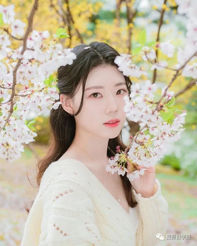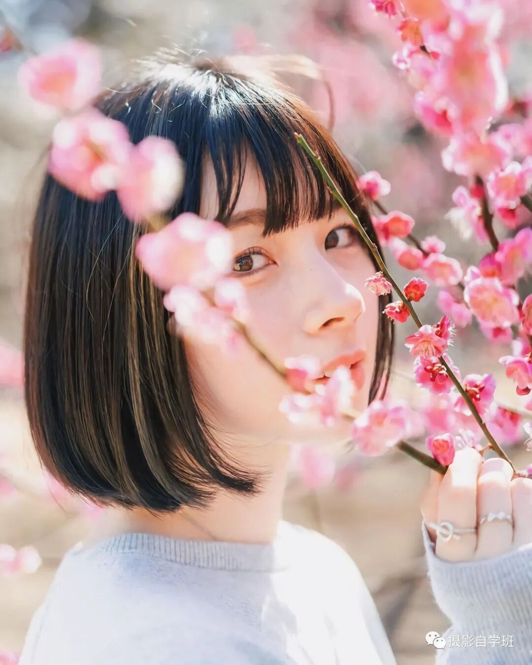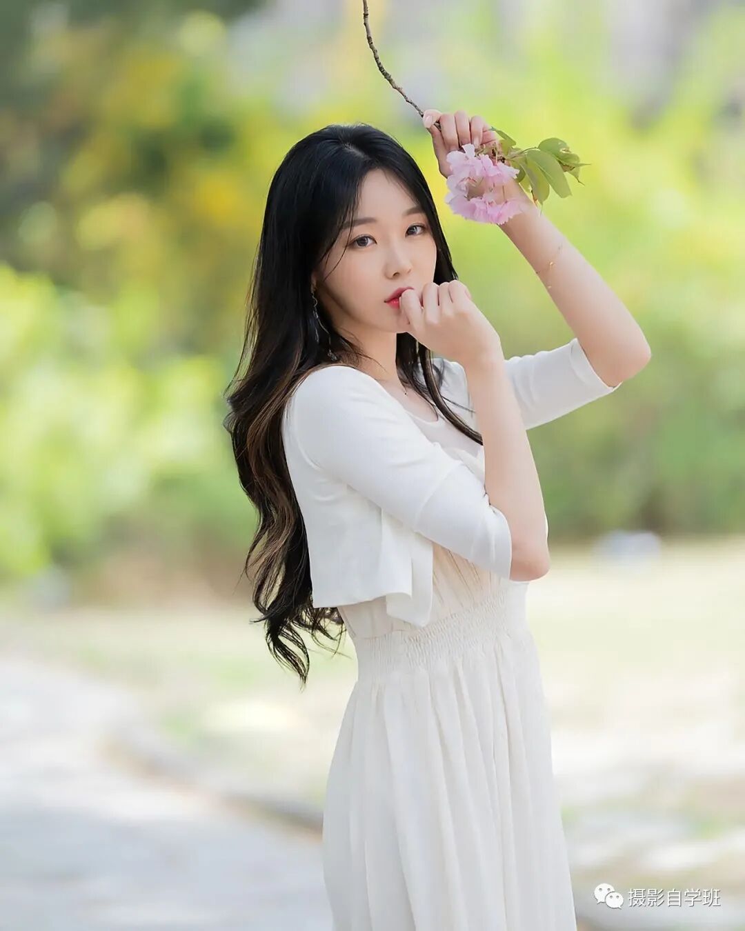 你看图7这张照片,人物的表情,右手,都没有什么毛病,但是拽着树枝的左手,过于用力,让人感觉好像要把枝条拽掉一样,所以我们要引导被拍摄的人,像图8与图9这样,动作轻柔一点,动作姿势轻柔,画面看起来更加舒适美观,与被拍摄者的神态,环境衣着,都能起到更好的呼应。如果被拍摄的人,穿着的衣服很伶俐,那动作可以用力一点。