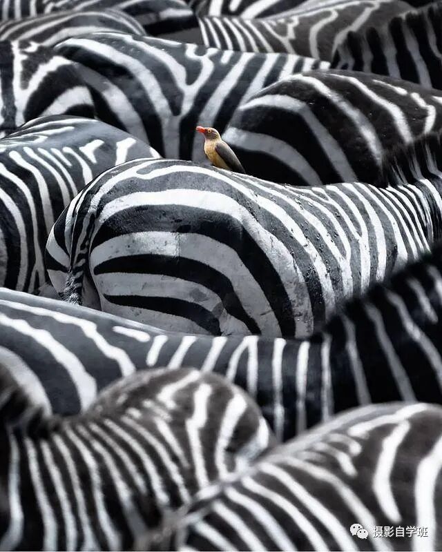 只拍斑马,不如等一个有差别色的鸟来更好看。