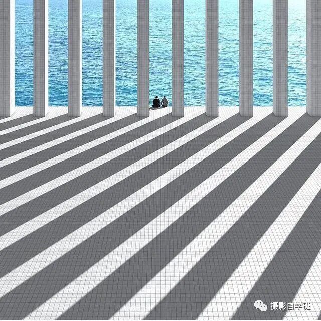 规律建筑,有韵律的光影,兴趣点人出现,活跃了整个画面。