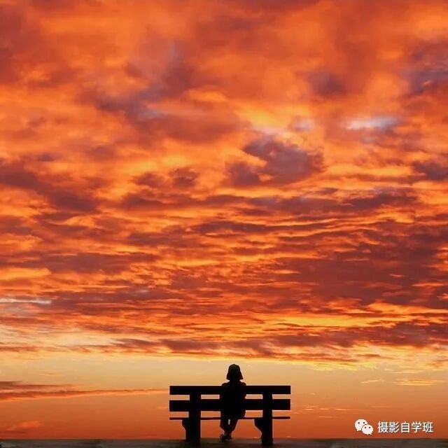 大气磅礴的彩云,安静的椅子人物剪影,