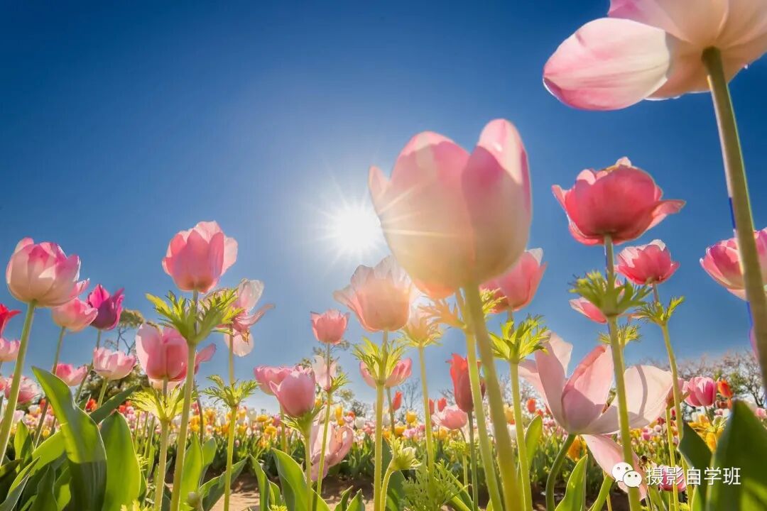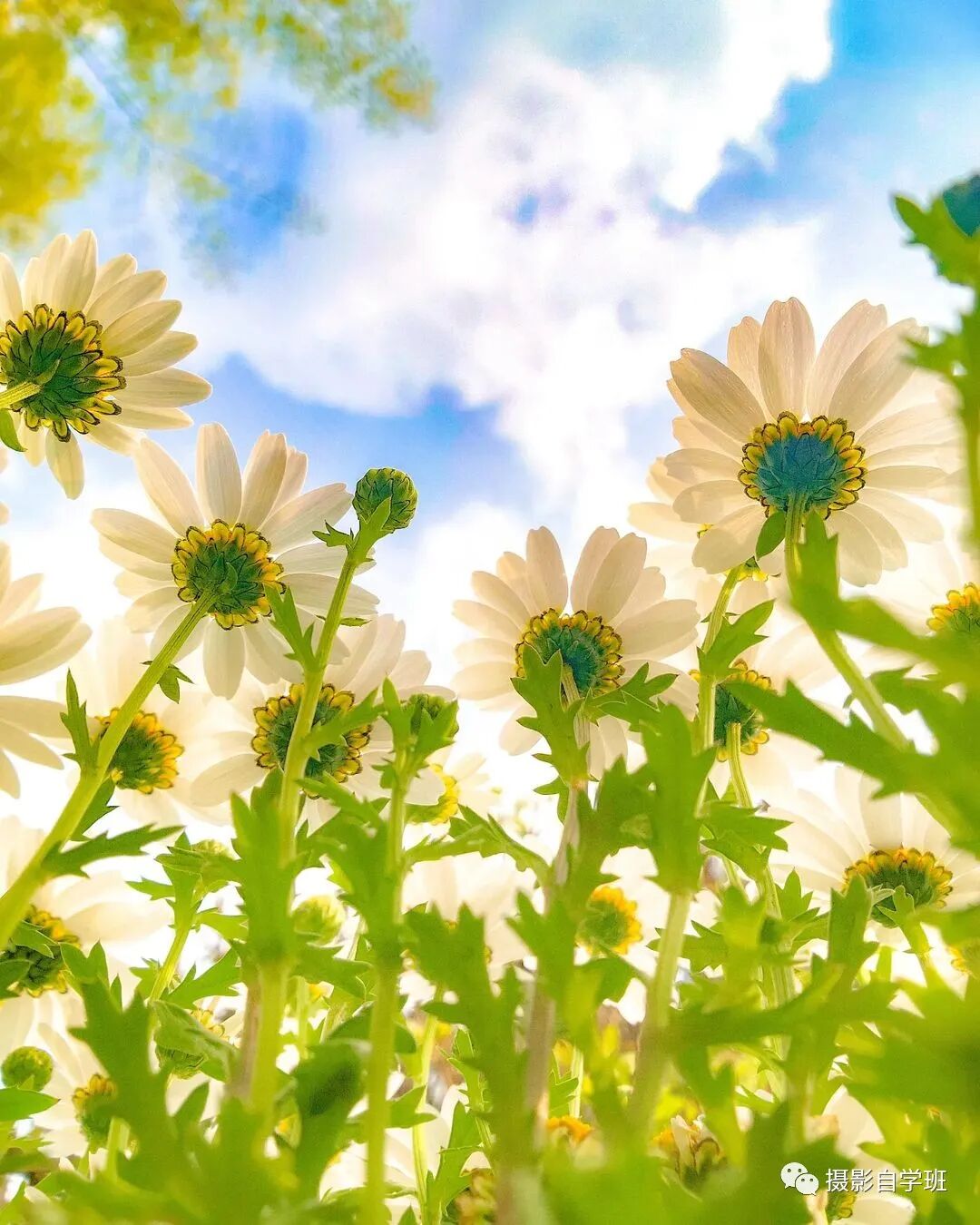 尝试仰拍小花,让小花和天空融为一体,这样可以创造出一种神秘的感觉,也可以让小花更加吸引人。小花会像图14和图15这样,呈现出一条条线,直接穿向天空,让你的花朵照片看起来更震撼。但不要用手机或者相机对着太阳,以免灼伤眼睛,以免损伤设备。