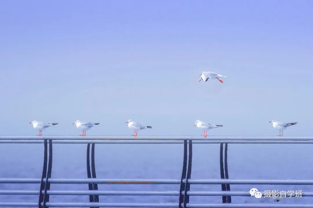 再看图10,如果这些海鸥,全都落在围栏上,那照片就很一般,很普通,但经过等待,动态的海鸥飞来,在它还没有完全落下时,按下快门,捕捉它动态的姿态,和下方静态的海鸥,形成对比,照片就好看了。