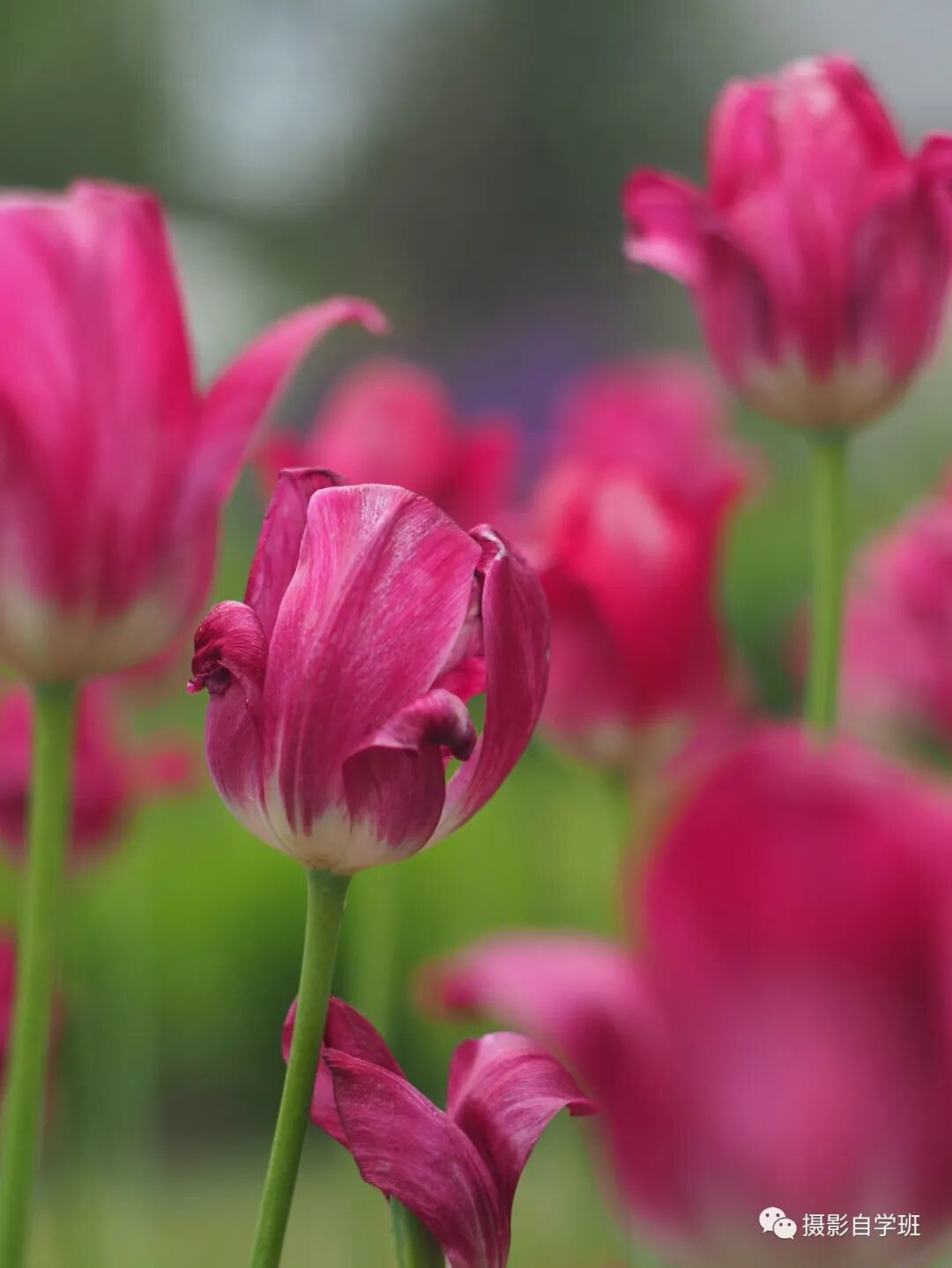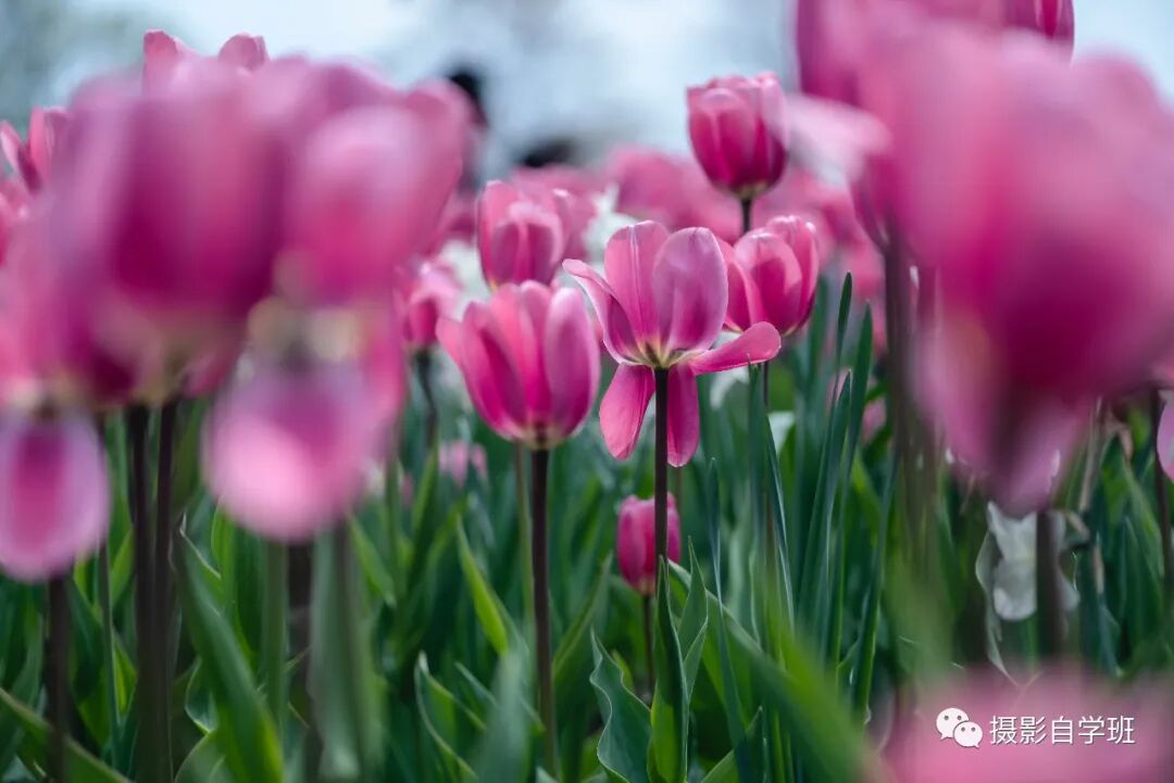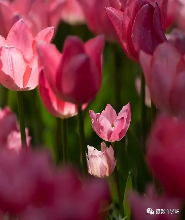 这里就需要你采用一些技巧了,比如像上图与下图这样,在拍摄的时候,蹲下是第1步,第2步就是找到左右两侧,都能够遮挡镜头的部分,拍摄时,让相机或者手机,贴近离镜头近的花朵,对焦在稍远处的花朵,这样就能够拍出来,纵深中看到一朵花的效果了。