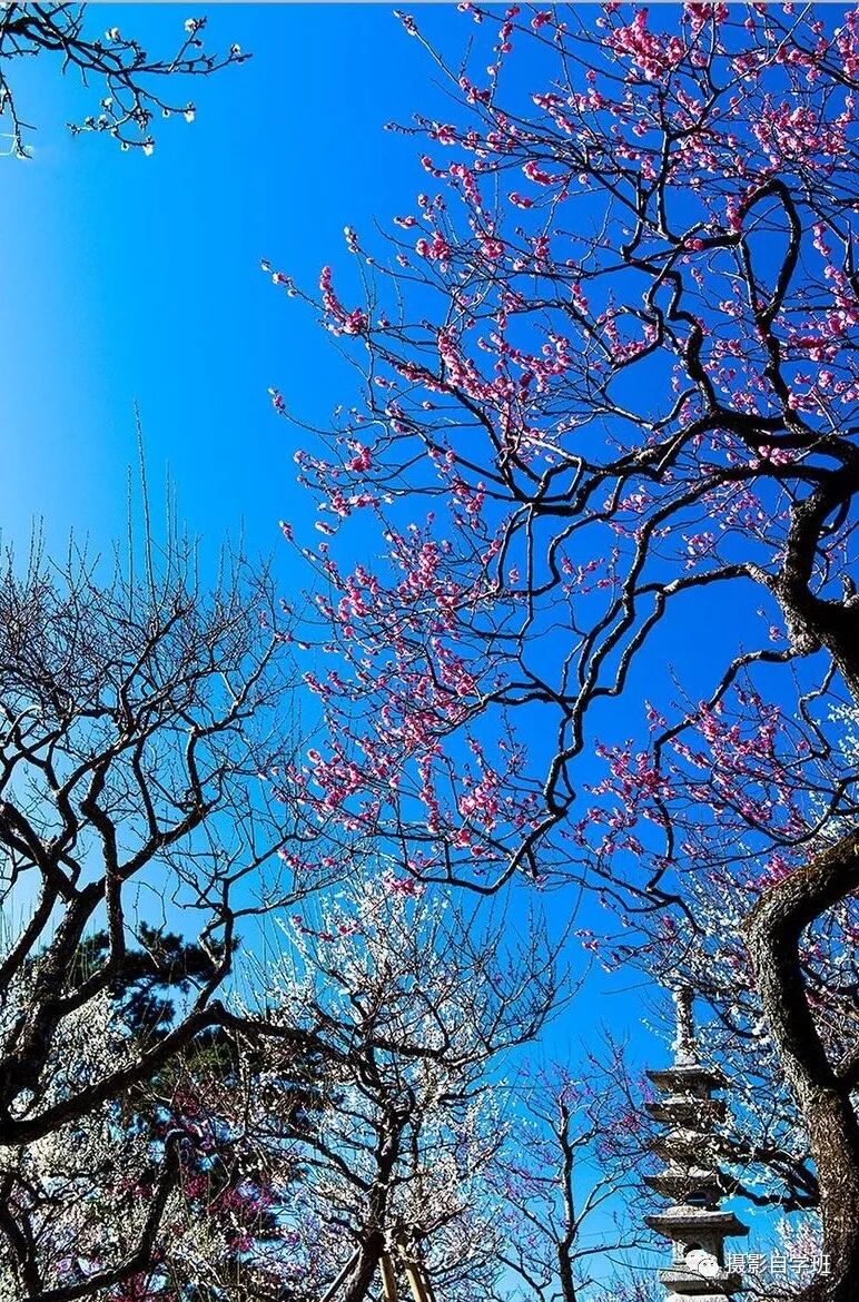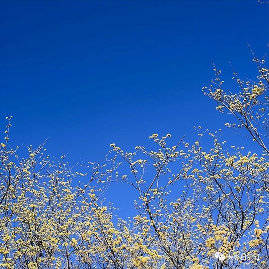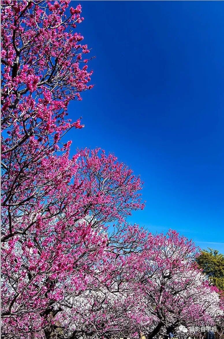 我们可能寻找了半天,所有的枝条指向同一方向的角度,还是不太会选择,那就要注意采用上图与下图这种方法,拍摄的时候在花树顶端的前方,进行留白。有留白,照片看起来就会更有空间,不那么拥挤,就会更加舒适。