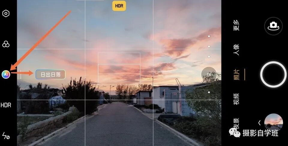 Ai是智能算法,可以自动帮你识别出拍摄环境,是日出日落,帮你匹配上相应的色彩。拍出晚霞的色彩,也会更好看,更漂亮。