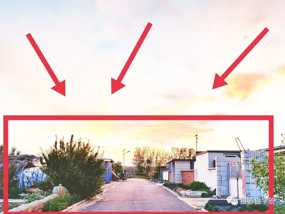 拍摄晚霞,尽量让天空大等于二分之一,因为要更多地体现天空的云彩。