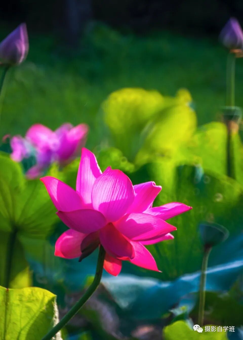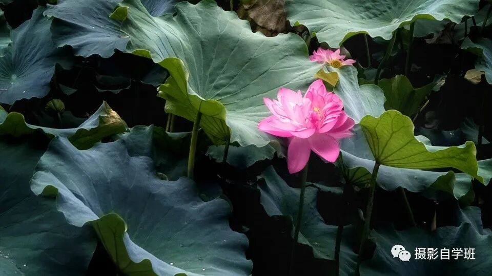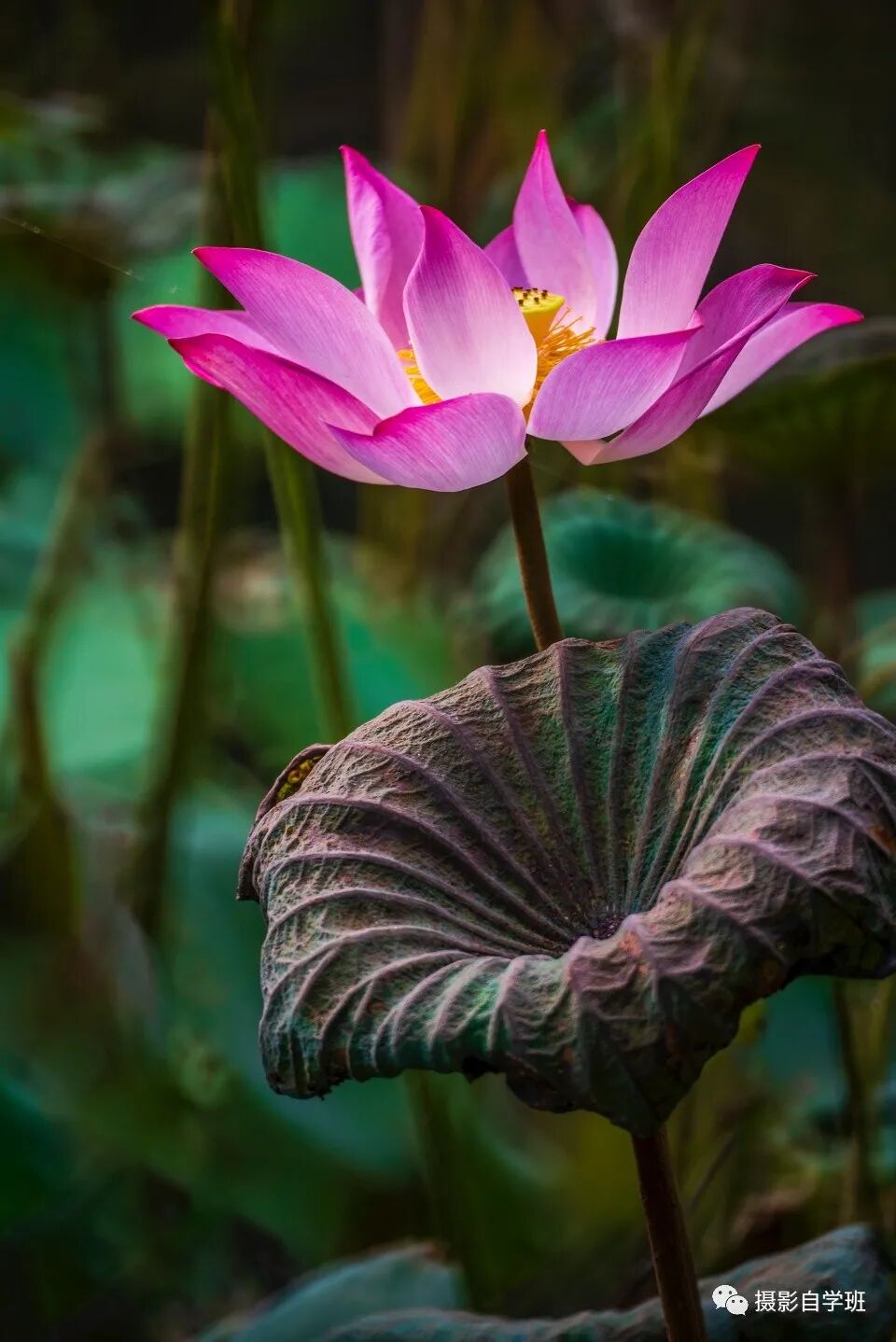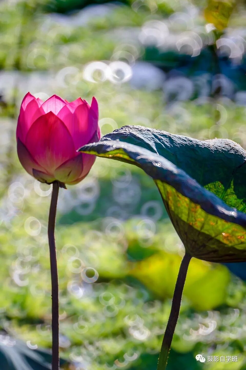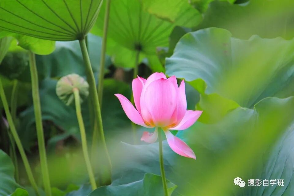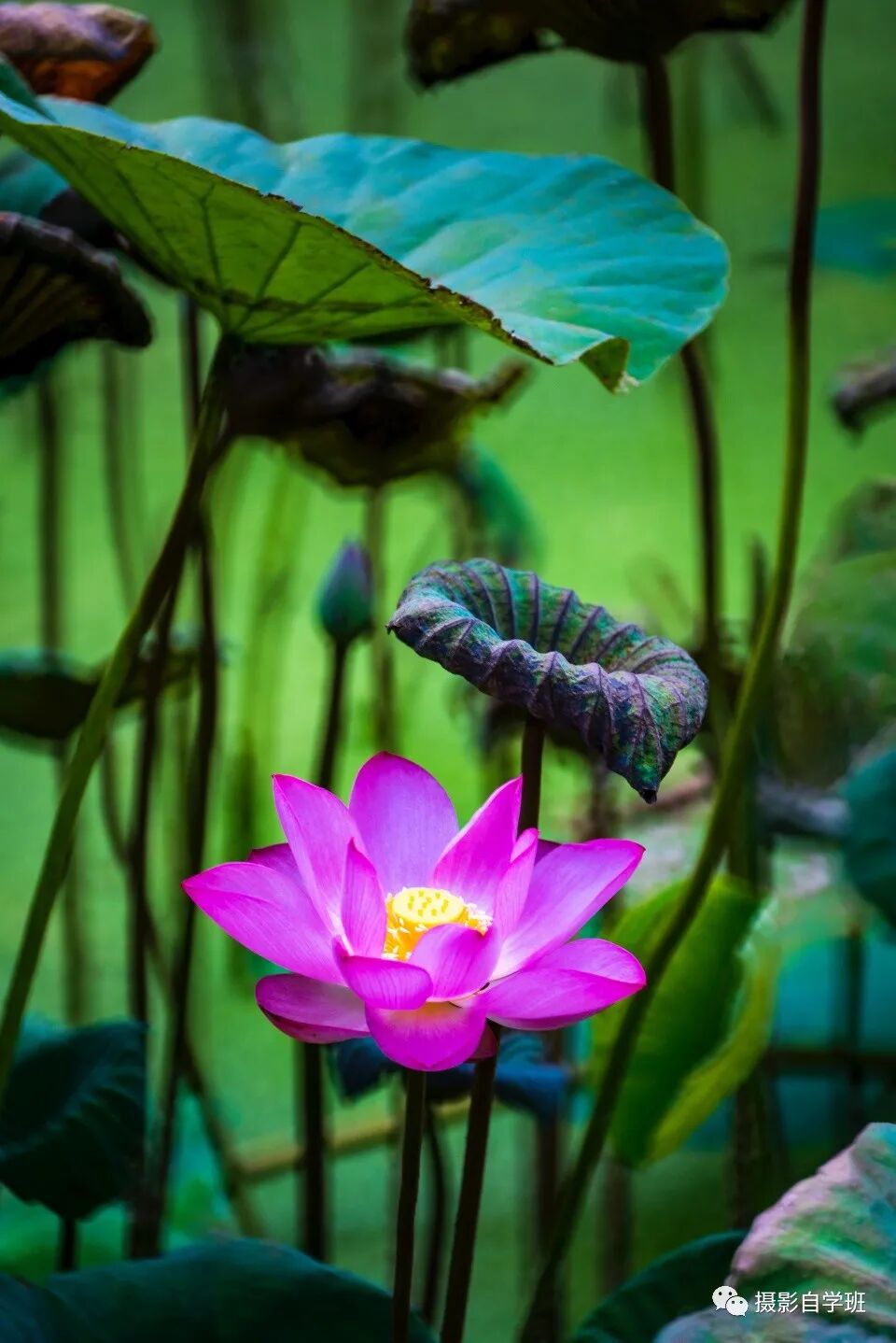 拍荷花,陪体也很重要,因为陪体也是照片中的元素,你要确保你照片中的元素,都起到加分的作用,而不是减分。什么样的陪体,是减分?像上图这样,颜色杂乱、线条杂乱、不干净的陪体,就是减分的。像下图这样,陪体也干净,典雅,才更能衬托主体荷花的美。