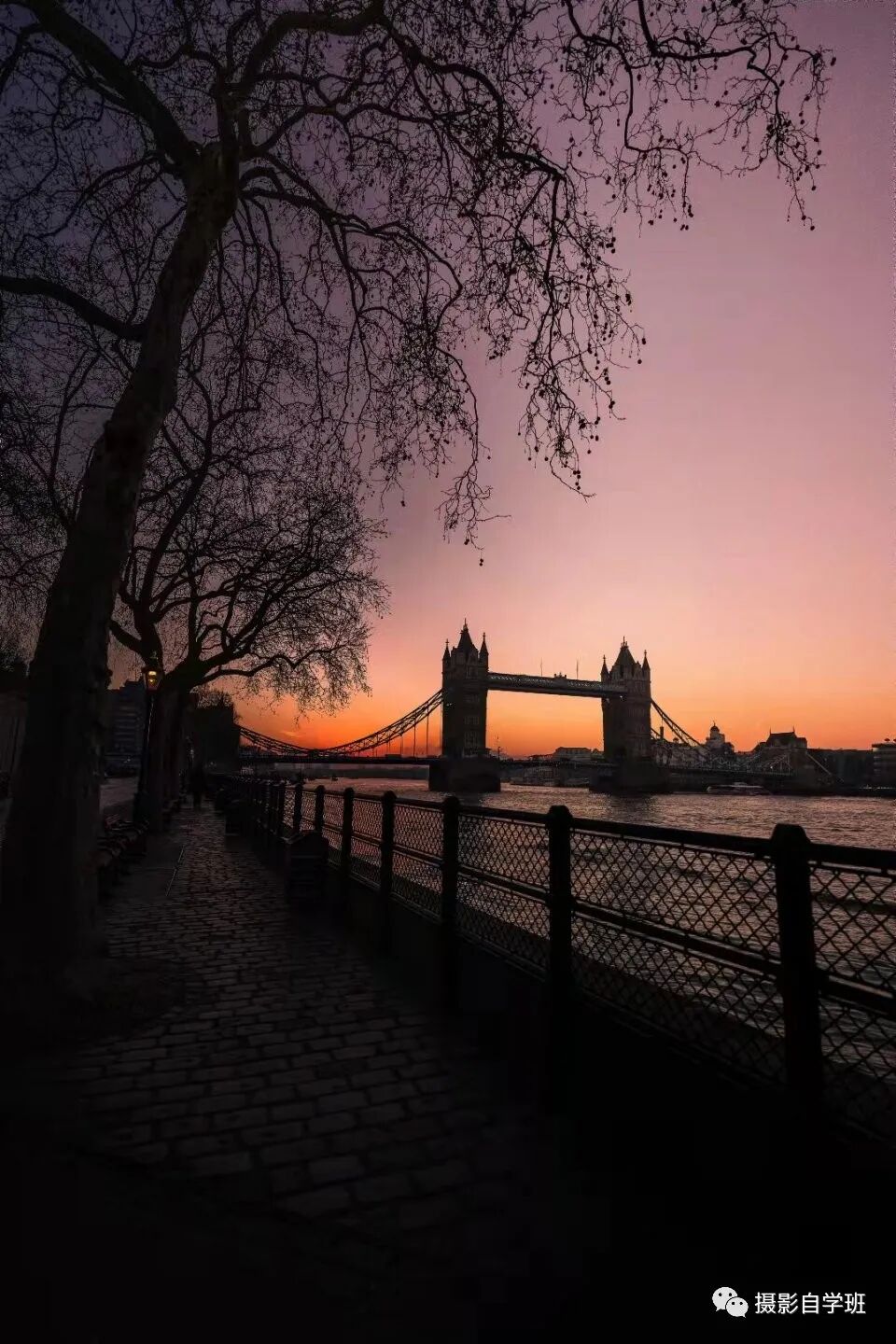 拍摄剪影,最不应该犯的错,就是不能像上图这样,光亮太少,阴影过多,甚至有的地方死黑一片。并且,前方的栏杆引导,光亮却不在路的终点。而应该像下图这样,剪影照片有亮,亮处,在照片主体附近。
