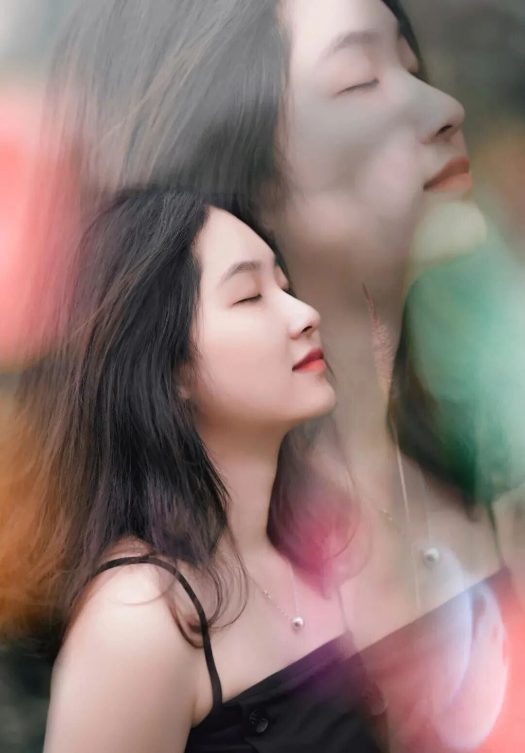 (7)通过这么调节,实现了一些有颜色的光源遮挡镜头后,拍出来的前景虚化效果,双重曝光,好似有人的虚影,遮挡住实体人物后的效果,让照片看起来更科幻。