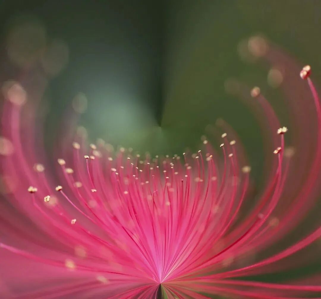 (2)即使是拍一个花蕊,我们也可以利用“遮挡”,不过,拍这种近距离的微小植物,需要使用微距镜头,如果用手机拍摄,要使用微距模式。微距拍摄时,镜头要足够靠近被拍的景物。前景贴在镜头上的花蕊,比如照片中左下角和右下角的花蕊,就因远离焦点,靠近镜头,而形成虚化了。