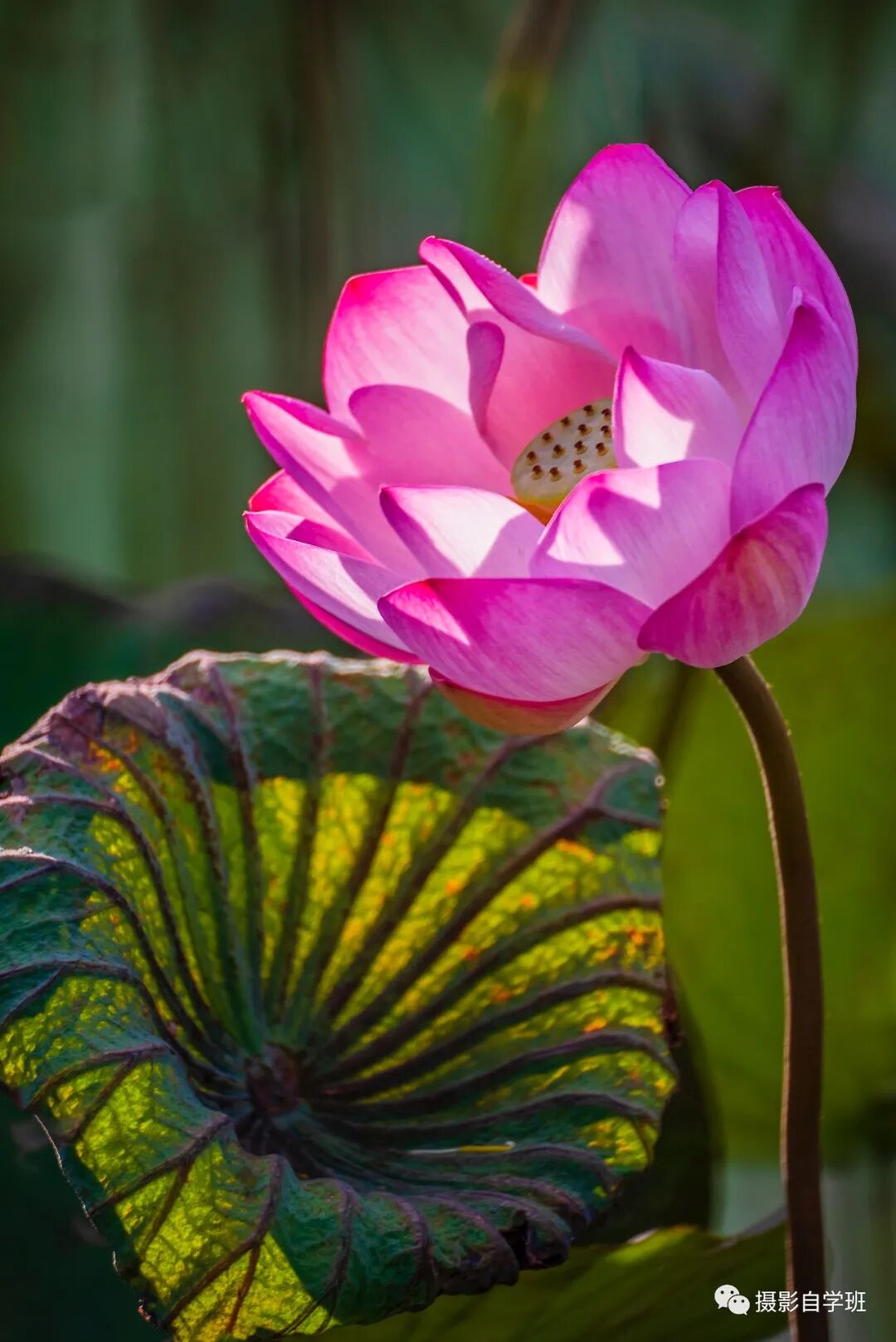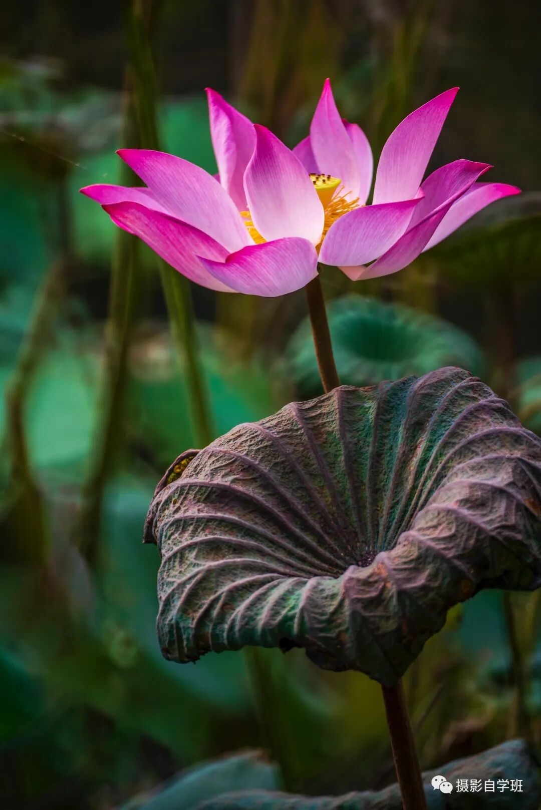 花朵是横向的,那你竖向拍就不好看,而图12这张照片,在荷花下方还有纹理感特别强的荷叶,如果只横向拍摄荷花,不带上下方荷叶,照片就缺少了细节,缺少了陪体的映衬,所以选择竖向拍摄。横向拍还是竖向,拍没有固定的,都是根据现场来做调整的,要在拍摄之前,整理好自己的拍摄思路。