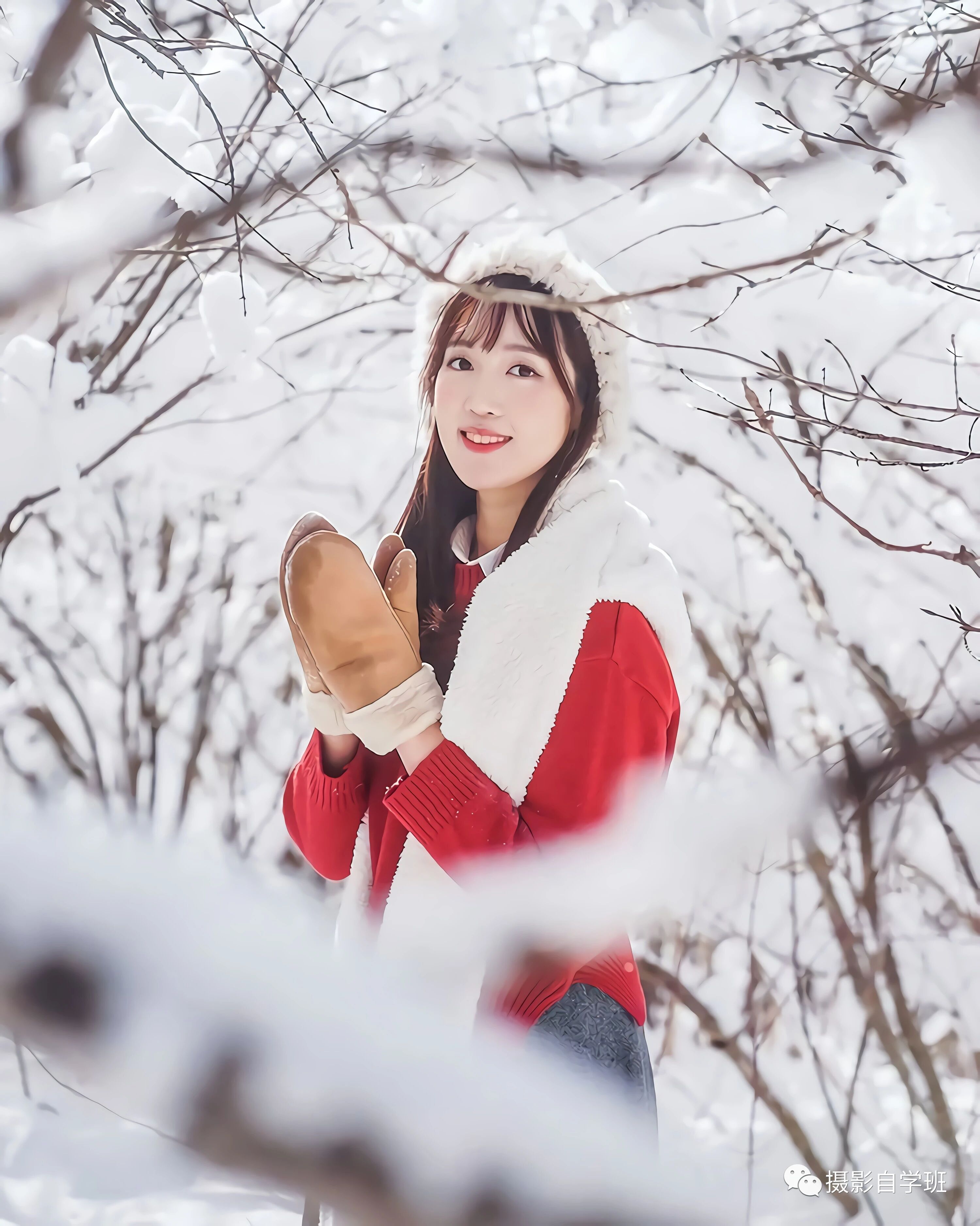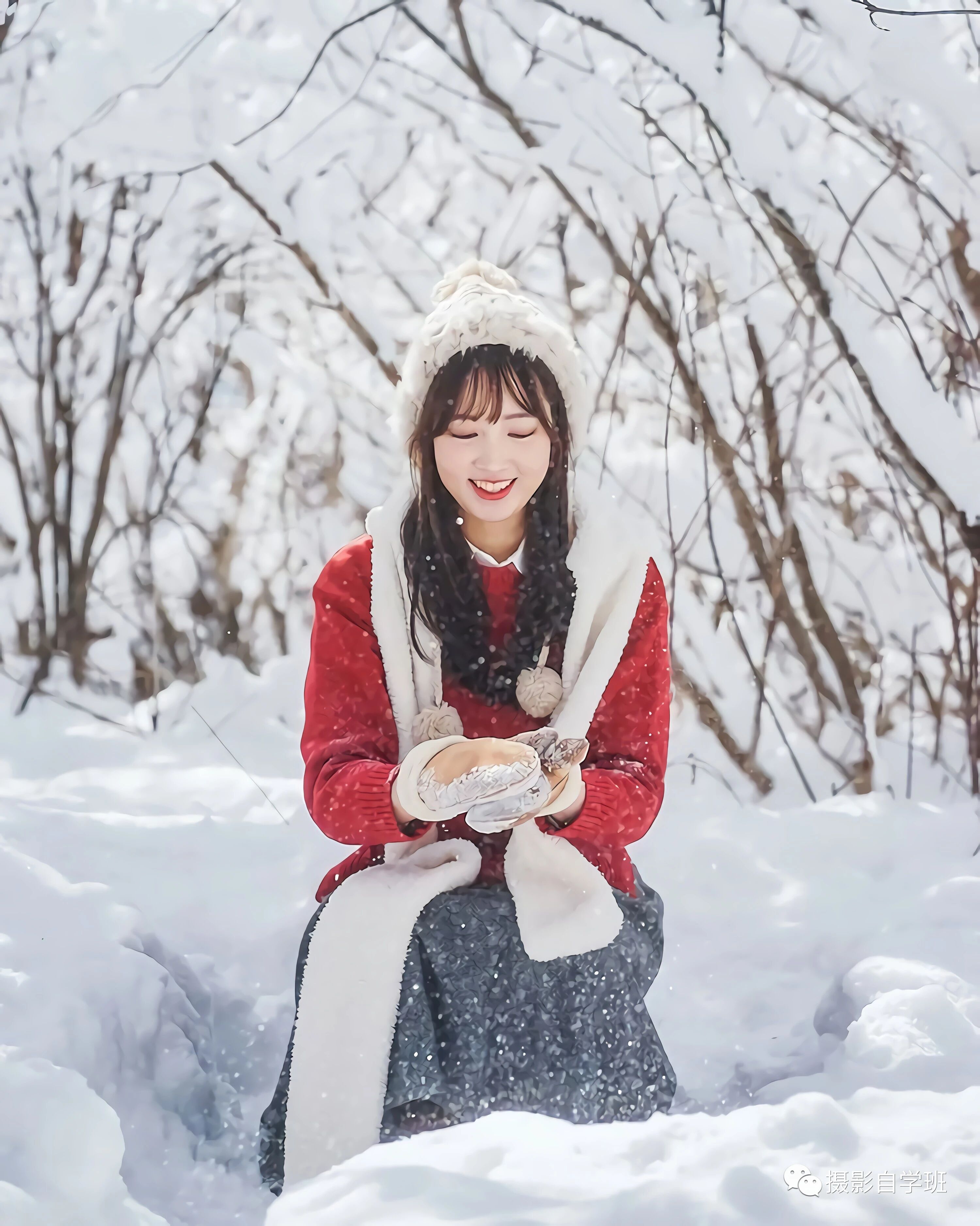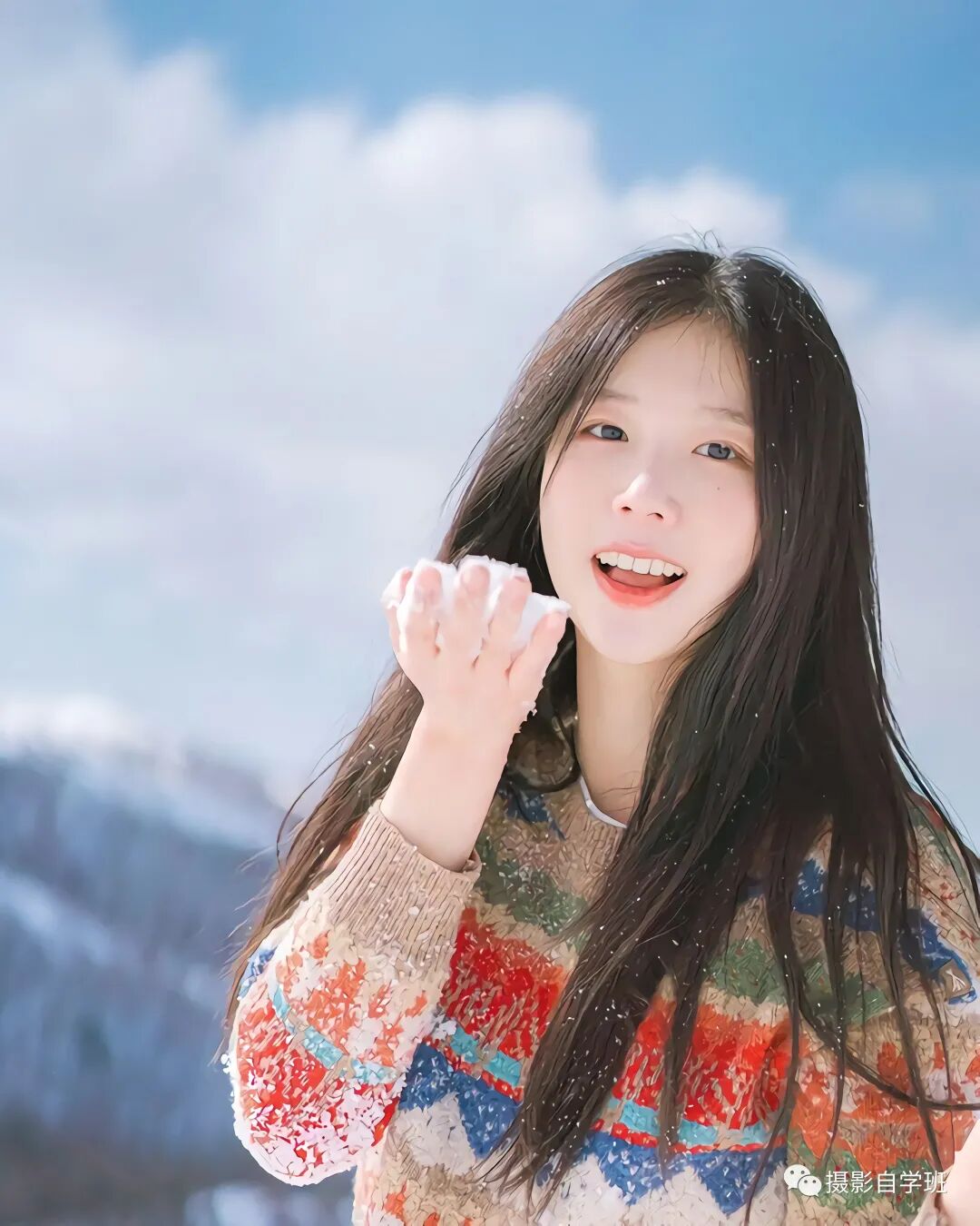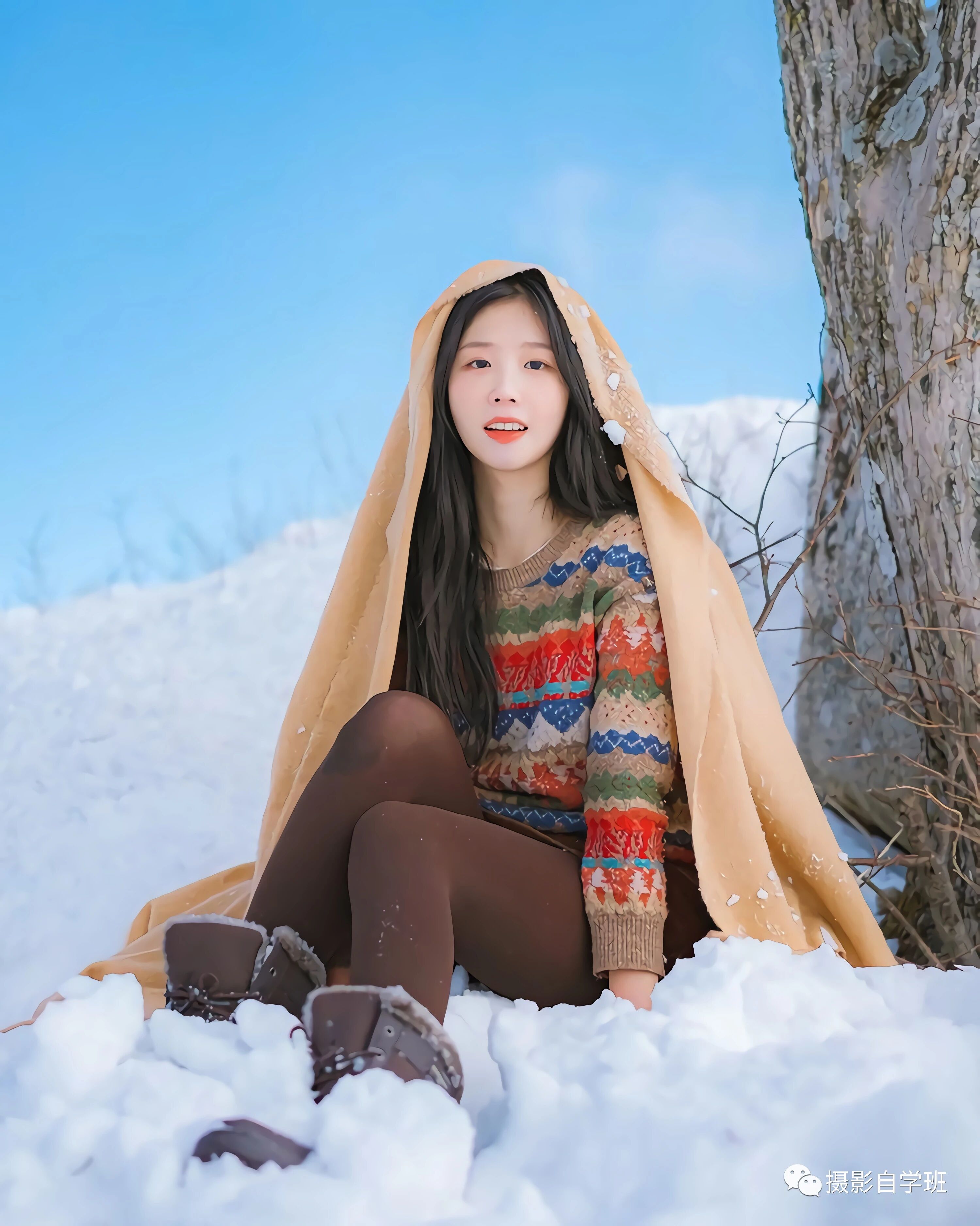 冬天已经到了,我们可以在雪地上,拍些漂亮的人像照片了,但不要像上图这样坐,在雪中,两个腿摞在一起显得非常粗,完全可以站起来以蓝天为背景,一只手捧雪,手部姿势自然,照片纯洁。同时也要注意,最好选择天上有白云的时间,这样天空就不会蓝的一片,天上有云彩,背景更丰满。