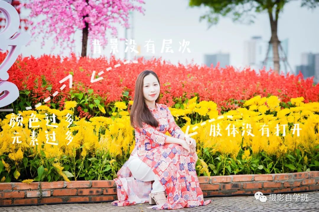 夏季花朵开得娇艳,我们都喜欢和花朵合影,那么我们来看看上图的问题在哪?