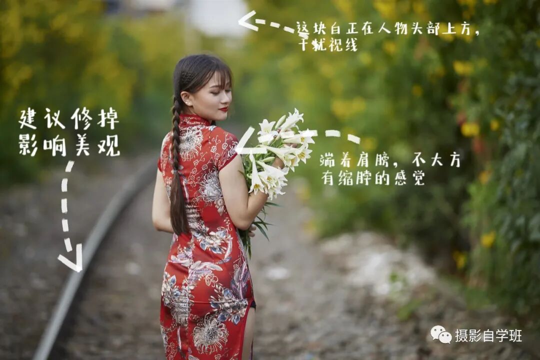 二是身后的一个线条,拍摄避不开的话,建议修掉。