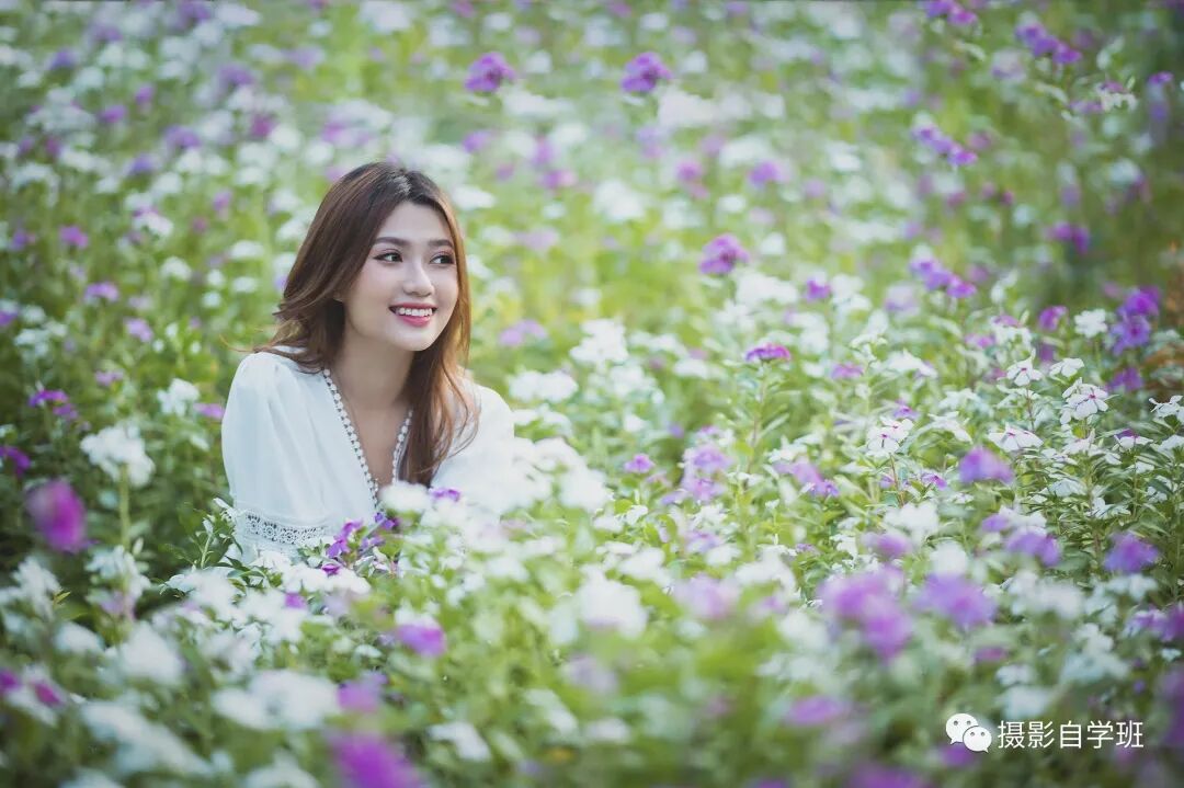 把人物和花海分离出来,这样就没有了“捉迷藏”的感觉, 回眸微微一笑很迷人。