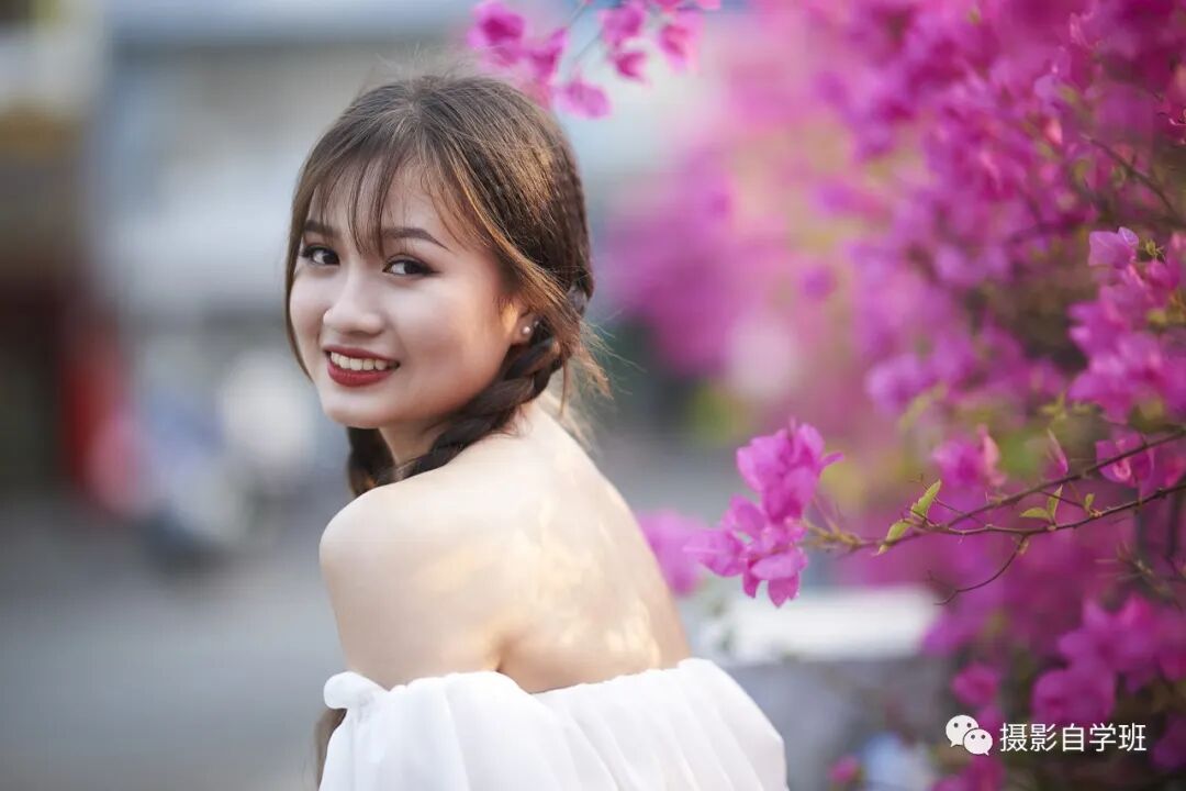 不扭捏也可以叫做不拧巴,人物姿势大方是最好的拍照方式。但上图中人物的展现就有些缩脖端肩,姿势扭捏不够大方。回眸的拍摄姿势没有什么问题,就是把肩膀放下来,整个人物也就不是端着的状态了,有时候一个小细节也会影响照片的整体。从照片的整体来看,画面有两处还有些干扰: