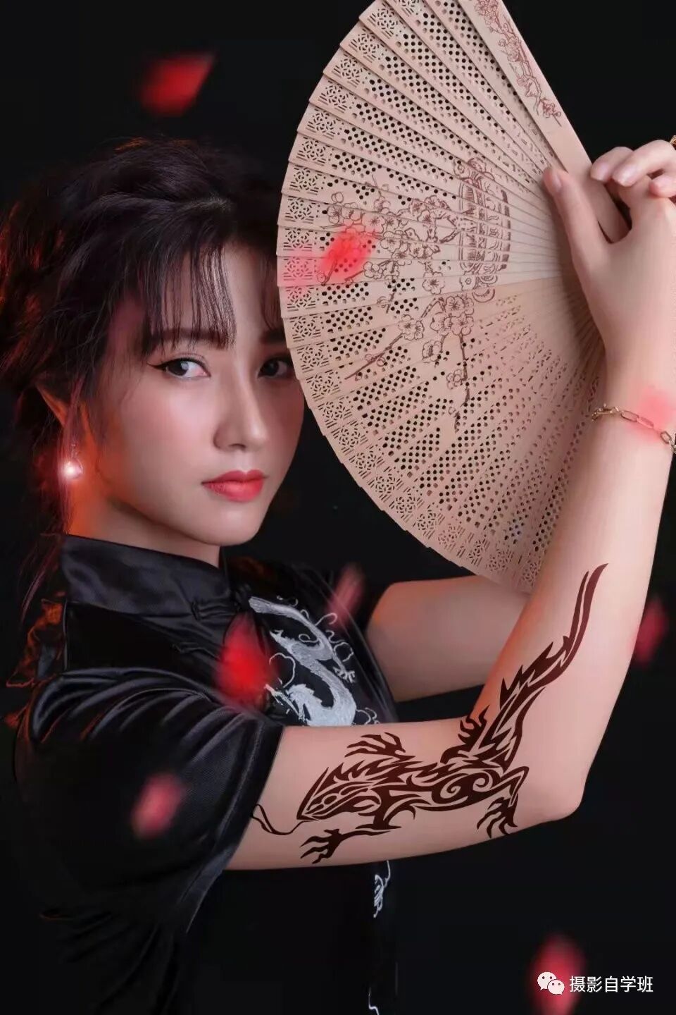 手拿扇子,上图的姿势可以学习,但是,拍摄时要注意,给人打光,照到人面部的光要柔和,上图颧骨处的光,明显过曝。拿扇子,如果你也穿古装的话,下图也可以模仿摆姿。