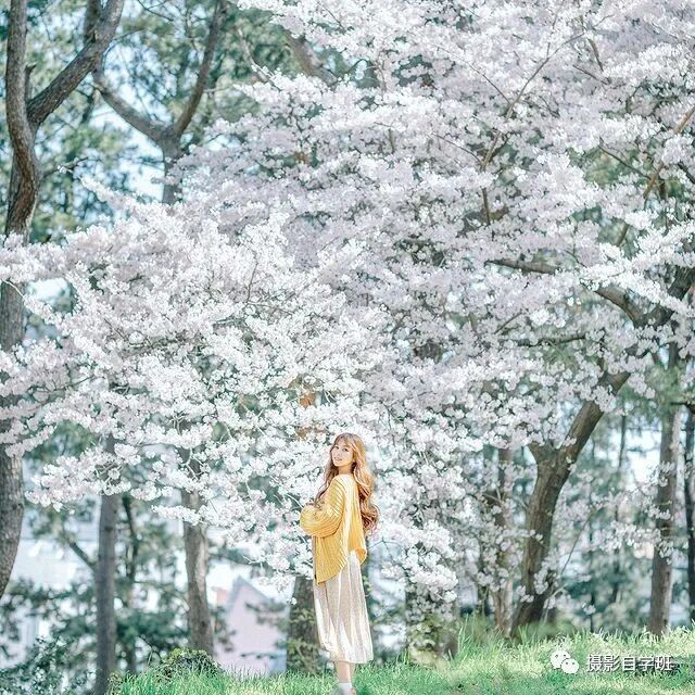 背景颜色都很淡,那被拍摄的人,穿着的衣服颜色,就要与背景有明显差别,同时,颜色还要艳丽一点,这样,她在整体环境中,才能更显眼,照片主次对比才突出,主体才明朗,画面才好看。