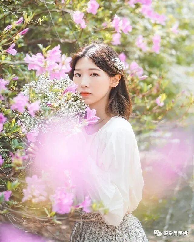 摆姿势好看了,照片其他的点,也要注意,还可以像图12这样,让照片朦胧一点,那该怎么做呢?可以挪动现场的花瓣,让花瓣挡住镜头,就能拍出图12这样的虚化了。
