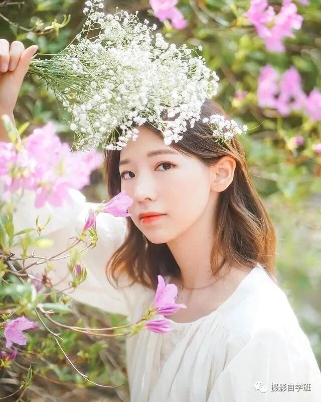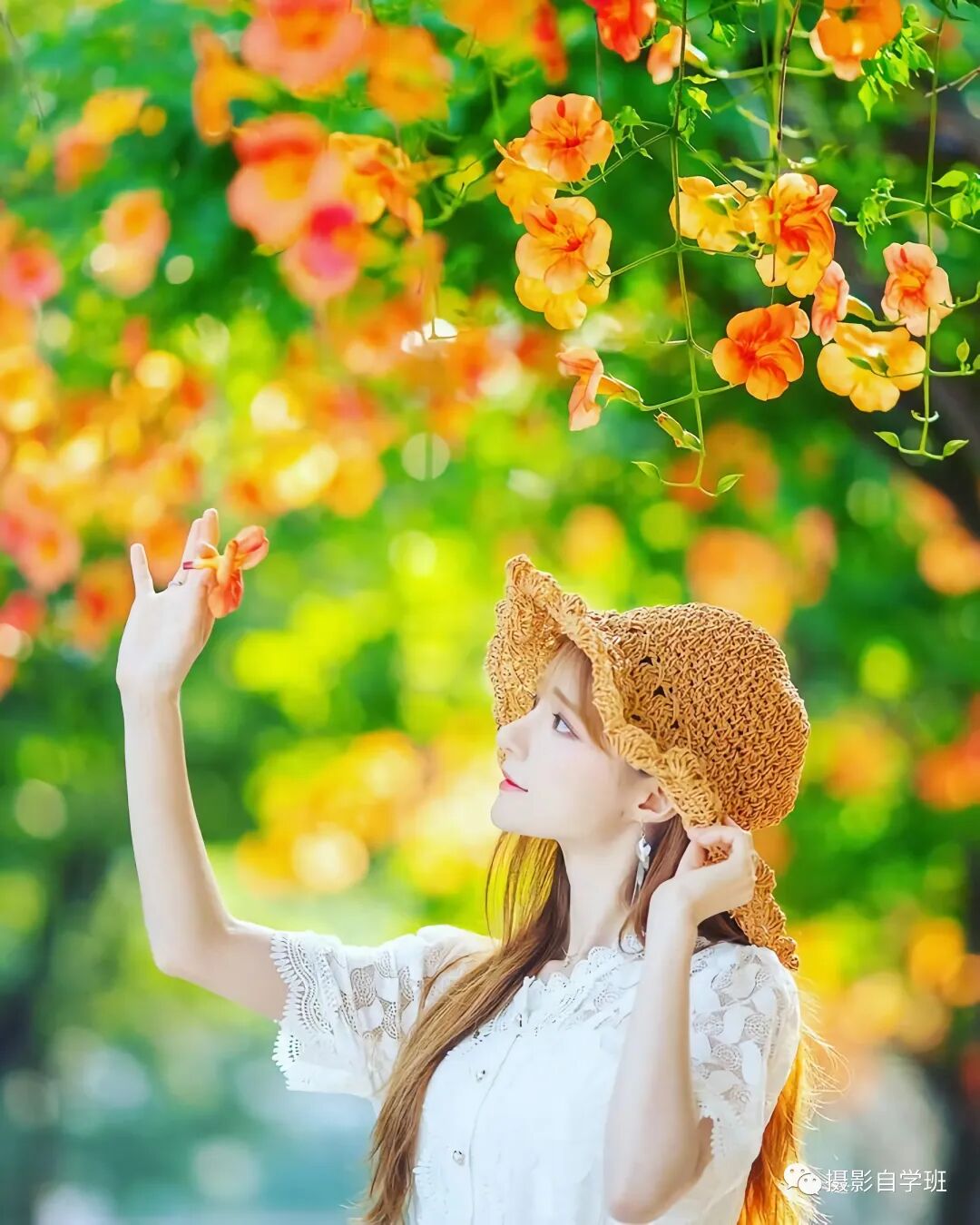 有道是:手拿鲜花姿势多。侧身回眸准没错。避开镜头思路开阔。下垂抚摸手有着落。拍摄要把鲜花挪。