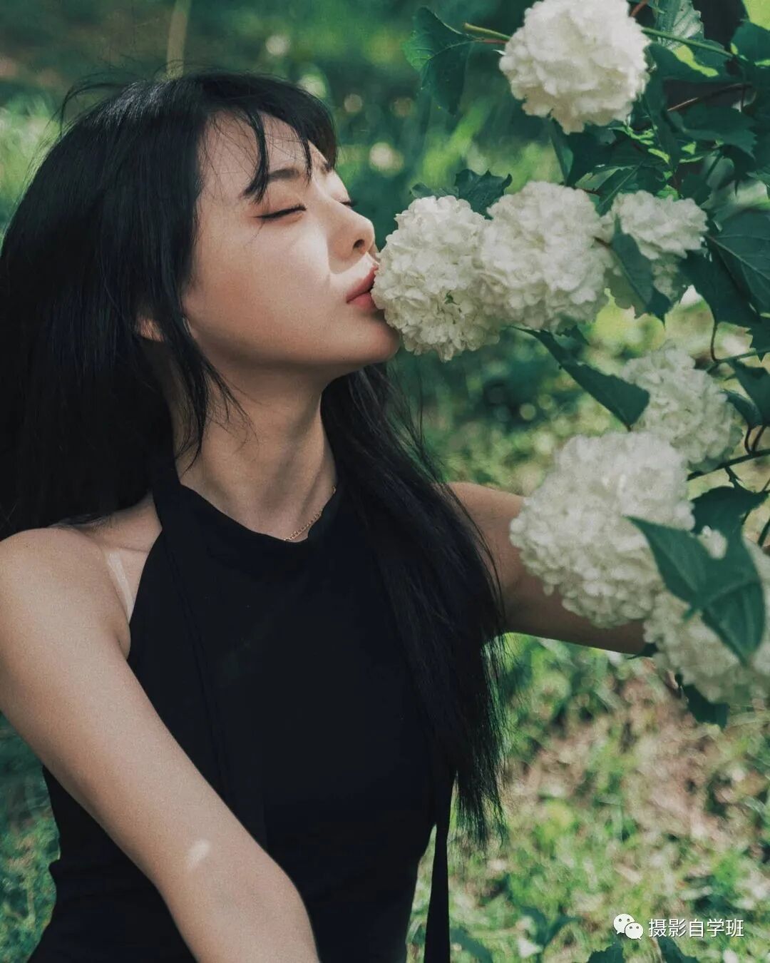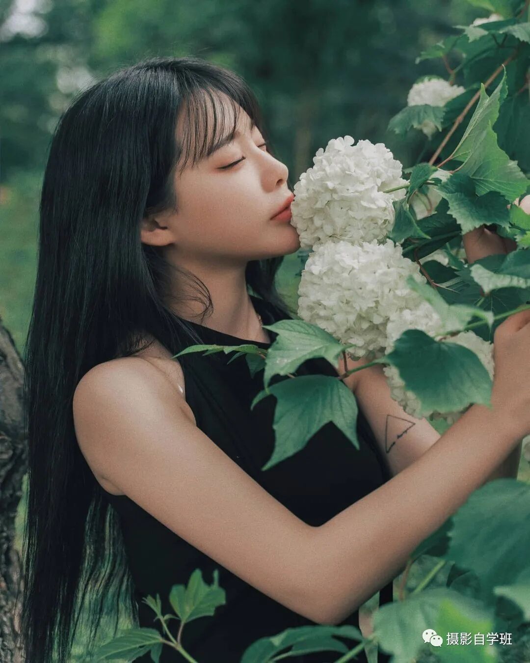 可以用花遮挡,但是不要让花,挡住人的整张脸,因为人像照片中,人是主体,人的面部是非常重要的,全都挡上了,就是让这张照片的主体表达得不够清晰,甚至可以说是表达的错误。那中年阿姨拍照片时,想要用花草遮挡形成虚化,应该怎么摆姿势呢?