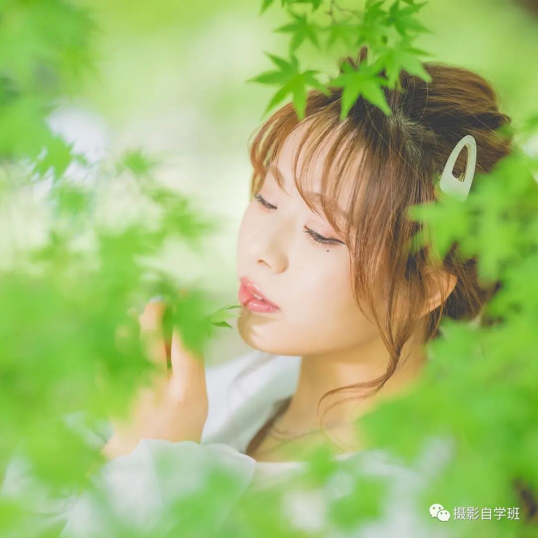 上面这张照片,用树叶遮挡住了背景的瑕疵,人物的姿势,和前一个只是变换了手臂的位置,这两种姿势,都可以参考借鉴。这一条主要是提醒你,在摆姿势的时候,不要忽略其它拍摄要点。