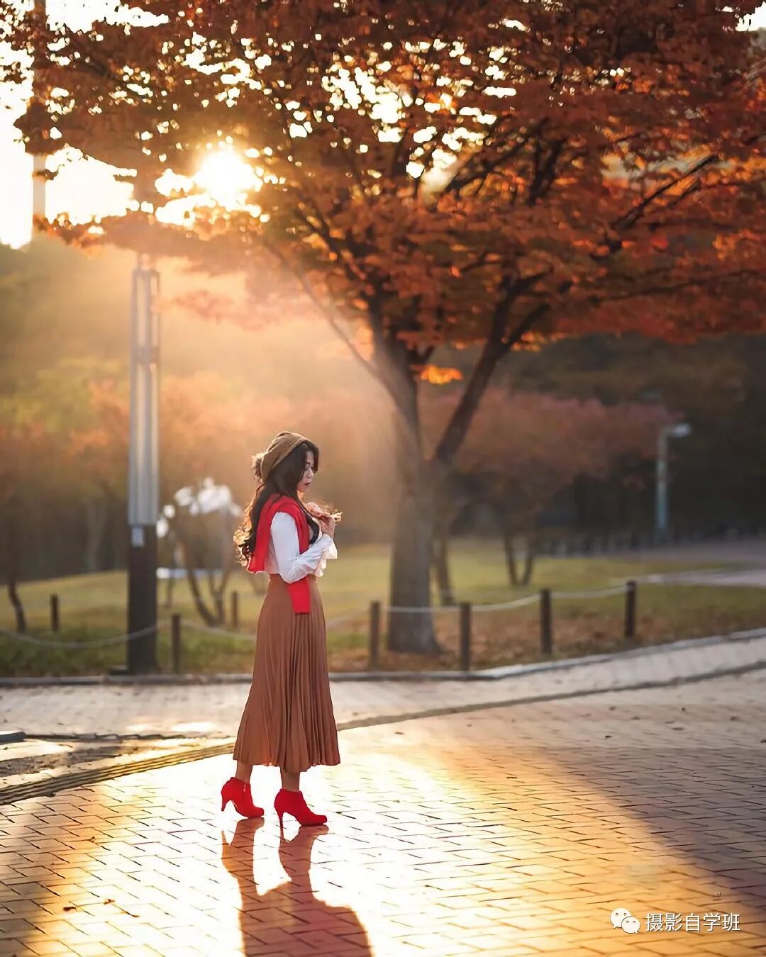 上图是利用太阳的余晖,把人物的影子,映射在了在地面上。影子和人物相互结合,相辅相成,让画面更具有故事感。注意拍摄这样有影子的时候,打开身体,不然就会黑漆漆一片。低头走路,有心事的样子,有情绪的表达。