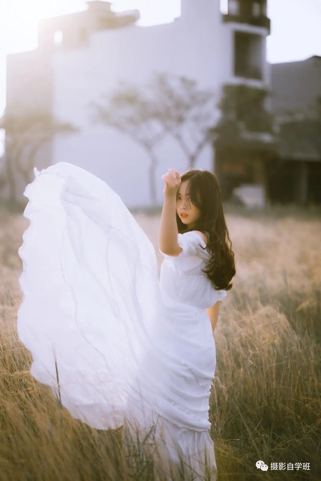 随风飞起的裙摆,头发,这些元素都比较随性柔和,我们在拍摄过程中,只需要等风刮过,或者掀起裙摆,动静结合的拍摄,会给画面增添姿色。