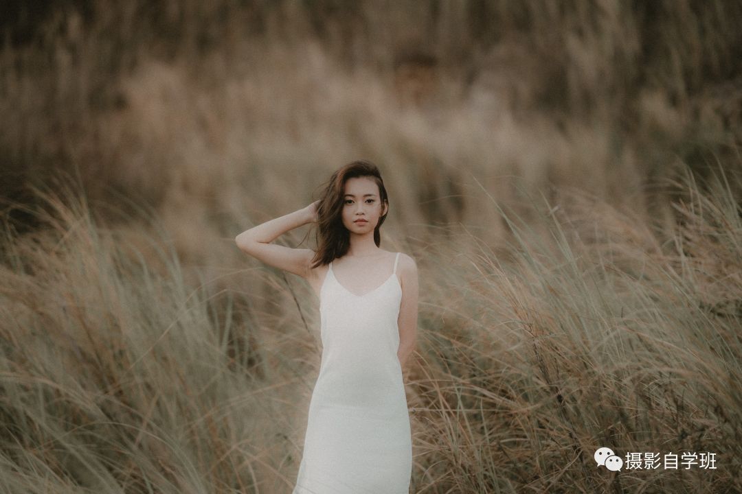 站在秋季的芦苇荡中,被场景包围的你,只需要穿着与背景区分开的衣服,就可以凸显主体,一只胳膊背后,另一只胳膊轻抚头发,非常有情绪的照片就展现出来了。